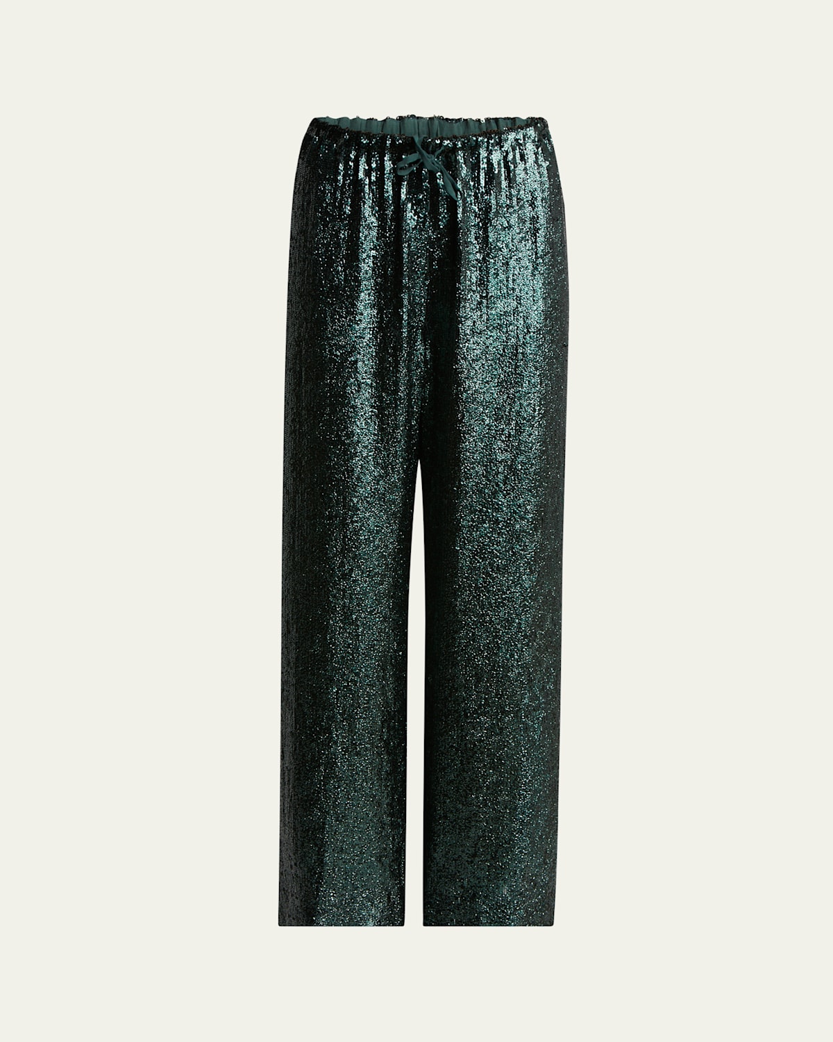 Dries Van Noten "Puvis" pants elevated with allover sequin embellishment and a drawstring waistband High rise Side slip pockets Wide legs Full length Pullon style Viscose Dry clean Imported