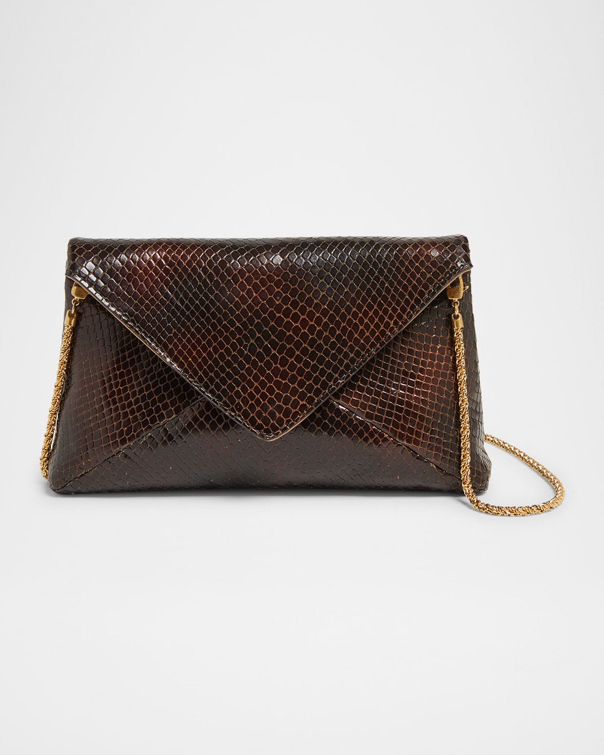 Dries Van Noten small envelope clutch bag crafted in snakeskinembossed leather Detachable chain shoulder strap Can be worn as a clutch or shoulder bag Flap top with magnetic closure Interior, one slip pocket Approx. 6.7"H x 11"W x 2.4"D Imported