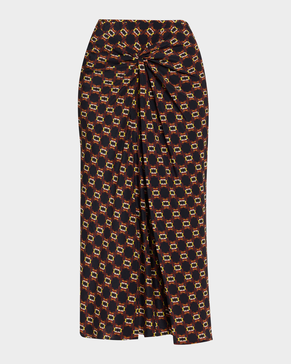 Composed of lustrous silk for a fluid drape, the "Smila" skirt by Dries Van Noten boasts an allover signature print and flattering front knot detail High waist Hem falls below the knee Aline silhouette Side zip closure Silk Made in Poland