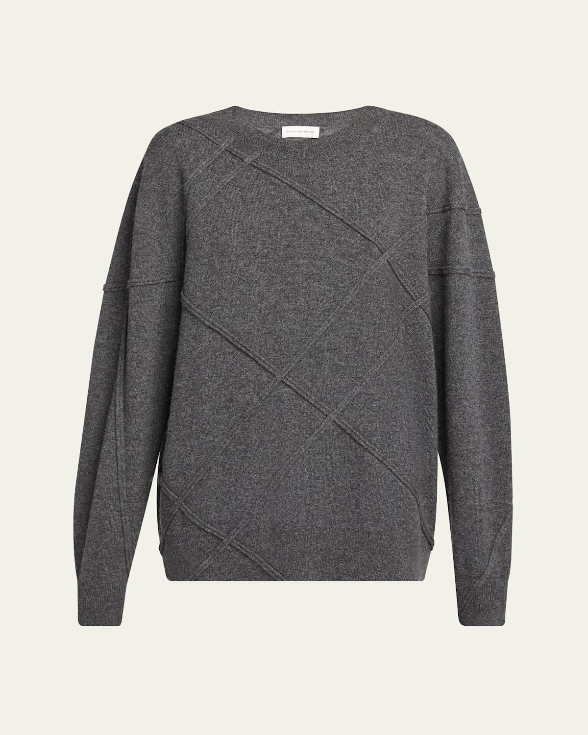 Knit from luxurious cashmere, the "Timona" sweater by Dries Van Noten is finished with tonal crossed textural stitch detailing Crew neckline Dropped shoulders Long sleeves Relaxed fit Hip length Pullover style Cashmere Imported