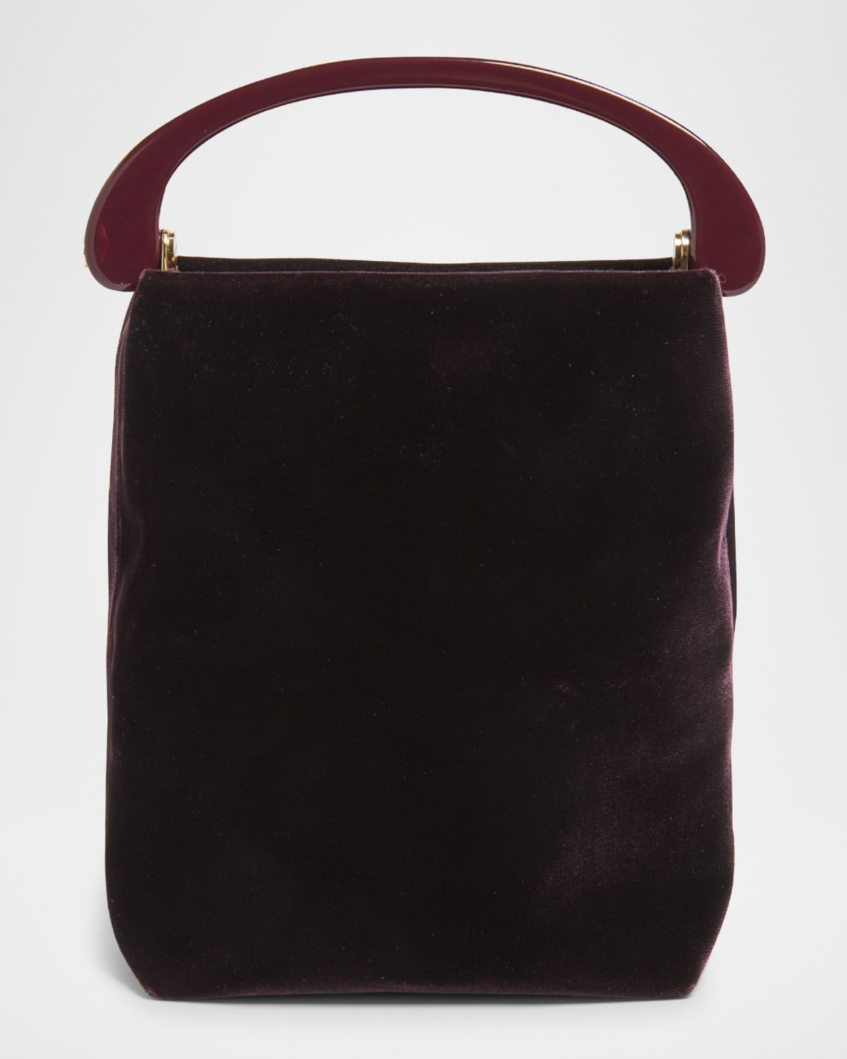 Dries Van Noten mini crossbody bag in velvety viscose with leather details and goldtone hardware Resin top handle Detachable, adjustable shoulder strap Can be worn as a top handle or shoulder bag Open top with magnetic closure Interior, one slip pocket Approx. 7.9"H x 6.7"W x 2.8"D Imported