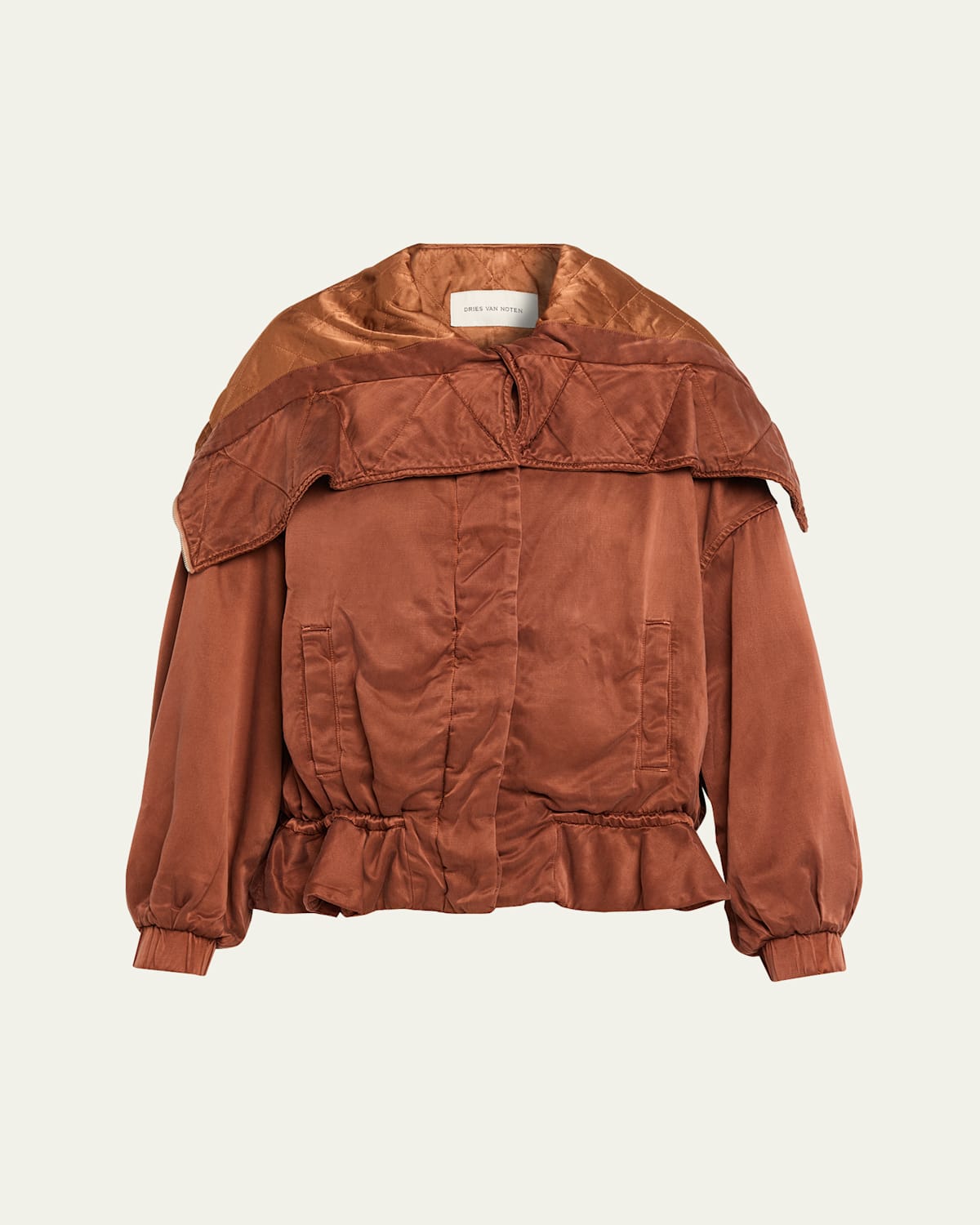 Dries Van Noten "Villa" satin jacket elevated with a zipped hood for versatile styling Dropped shoulders Long sleeves with elastic cuffs Side pockets Relaxed fit Drawcord hem Concealed zipfront Cupro/cotton Dry clean Imported