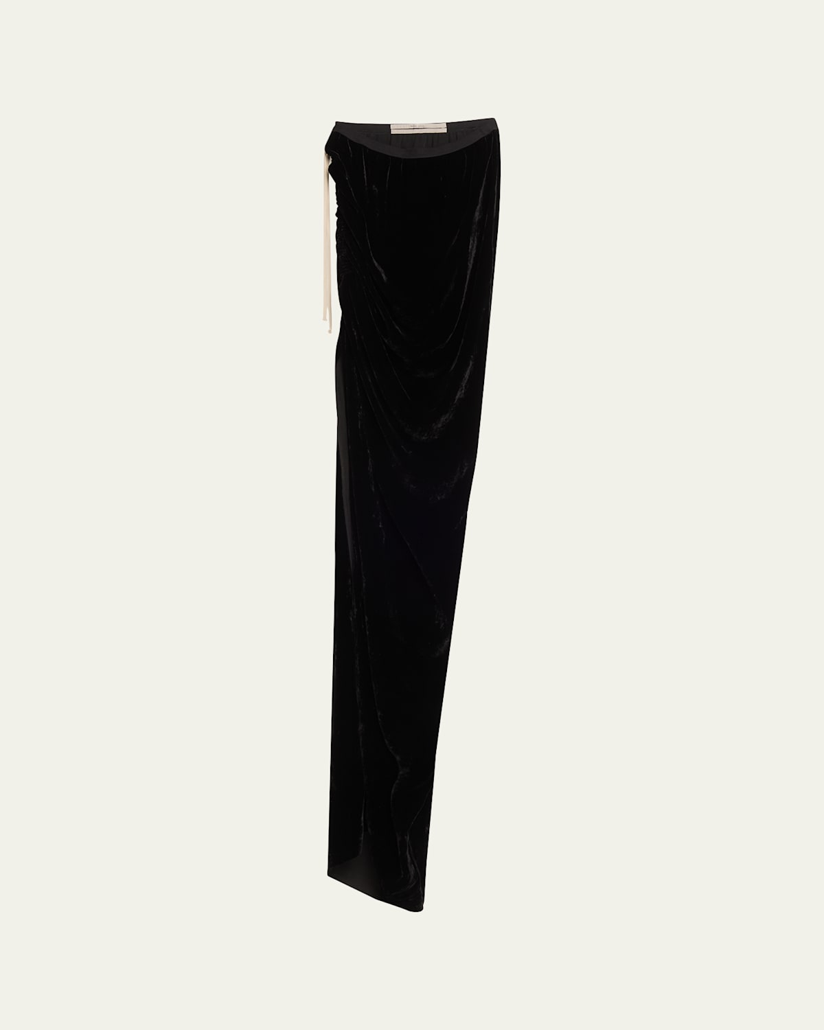 Designed with a cascading, floorsweeping hem, this skirt by DRKSHDW RICK OWENS is crafted from plush velvet Highrise waistband Thighhigh front slit Full length Skirt falls straight from hip to hem Slipon style Cupro Made in Italy