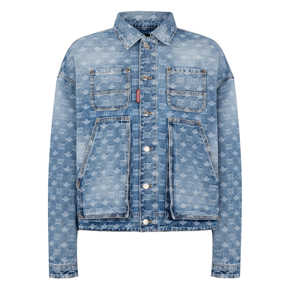 blue logo embellishment patch pockets button fastening buttoned cuffs polo collar