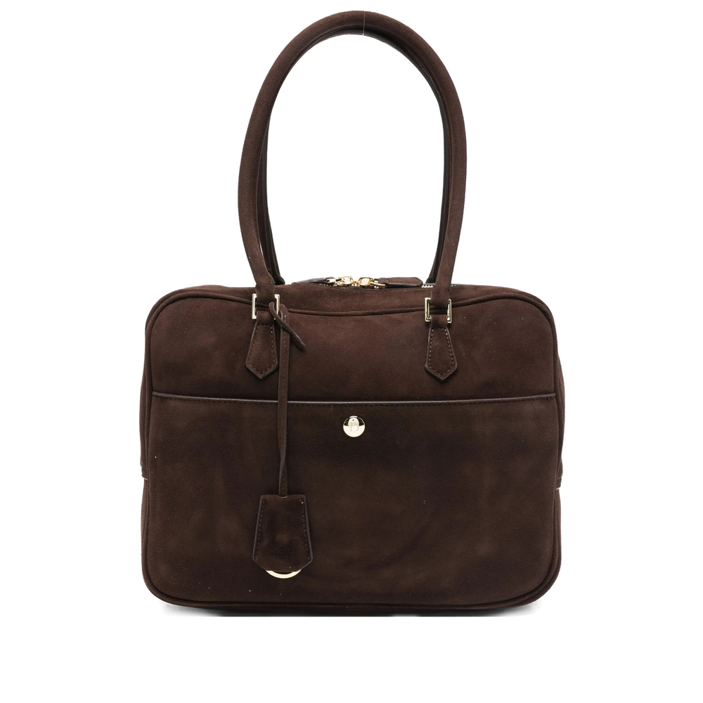 brown top handles front slip pocket gold-tone hardware two-way zip fastening internal slip pocket