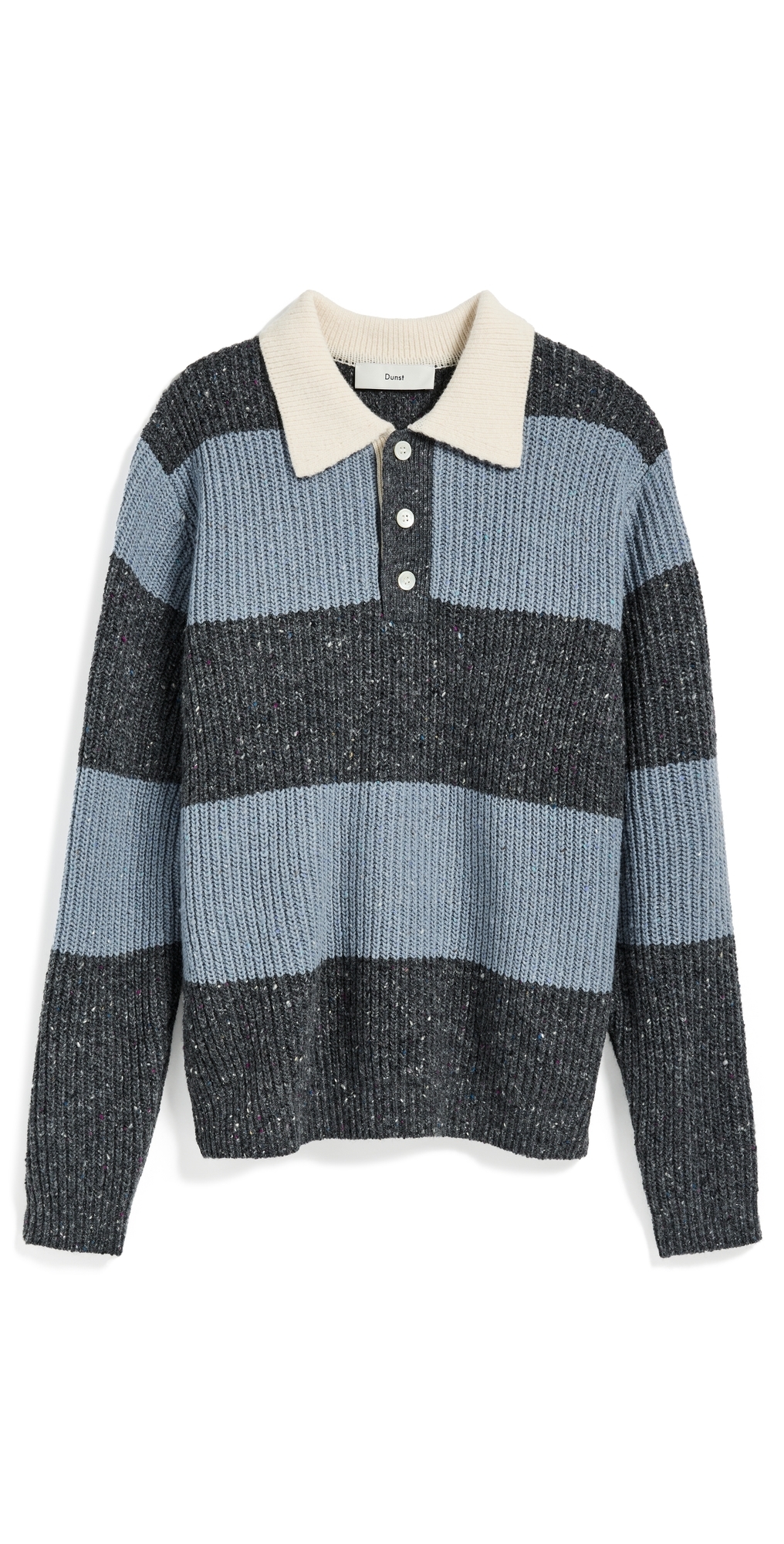 Unisex Chunky Rugby Sweater Soft Blue/Grey