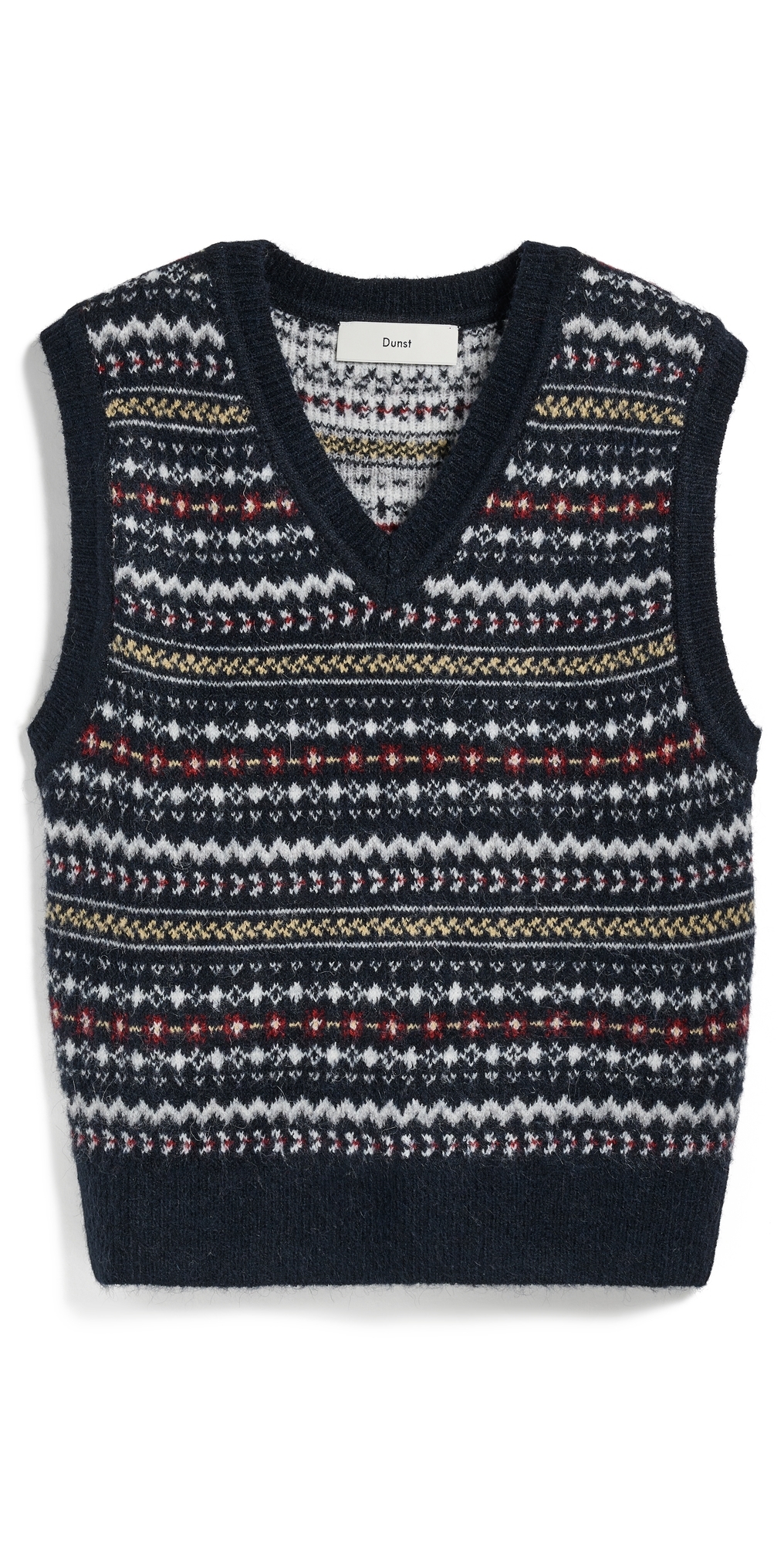 Fabric: Mid-weight, super-stretch knit. Geometric stripe pattern. Ribbed trim. Brushed finish. V neck. Sleeveless. Shell: 50% acrylic/32% nylon/15% wool/3% polyurethane. Dry clean. Imported, China. Measurements: Measurements from size XS Length: 19.25in / 49.0cm, from shoulder