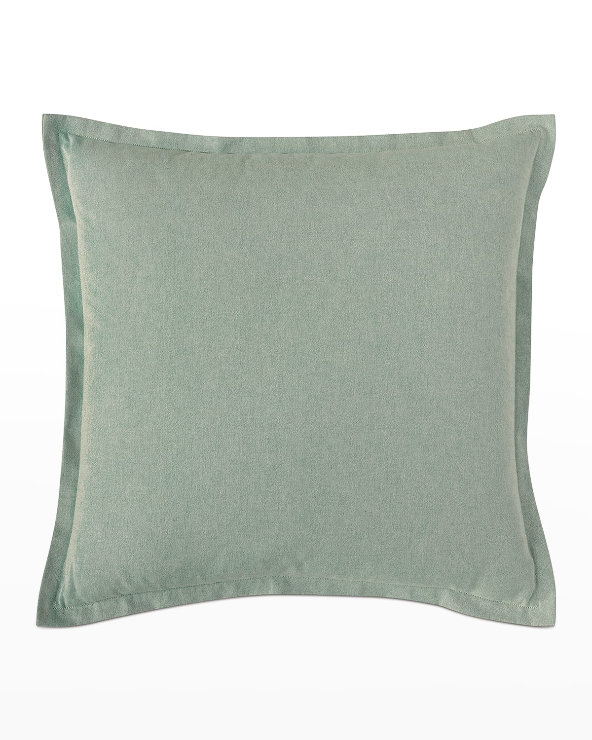 Pillow sham reverses from teal to taupe Handcrafted of cotton Flange edge finish Plume insert included Invisible zipper closure for easy care Approx. 27"Sq Item Weight (Lbs.): 5.0 Dry clean Made in USA