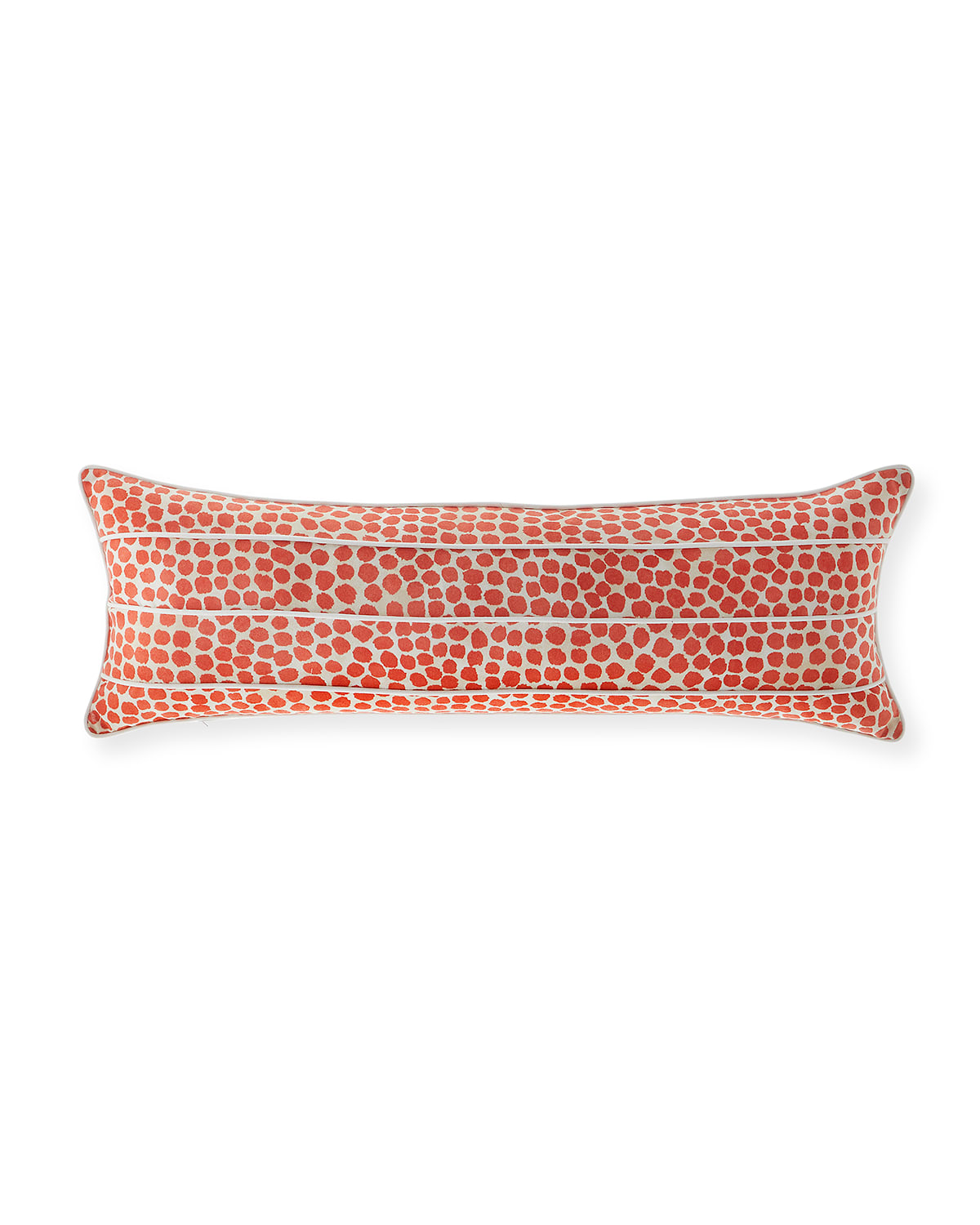 Decorative pillow is made of polyester Size: 36"L x 13"W x 6"D Backed in solid, white fabric Small welt edge finish Quickdrying polyester insert included Zipper closure for easy of care Spot clean only Made in USA