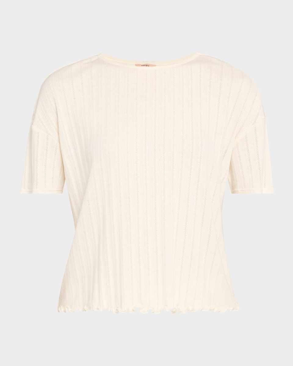 Eberjey ribbed tee with pointelle detailing Crew neckline Drop shoulders Short sleeves Lettuce edge Relaxed fit Pullover style Modal Imported