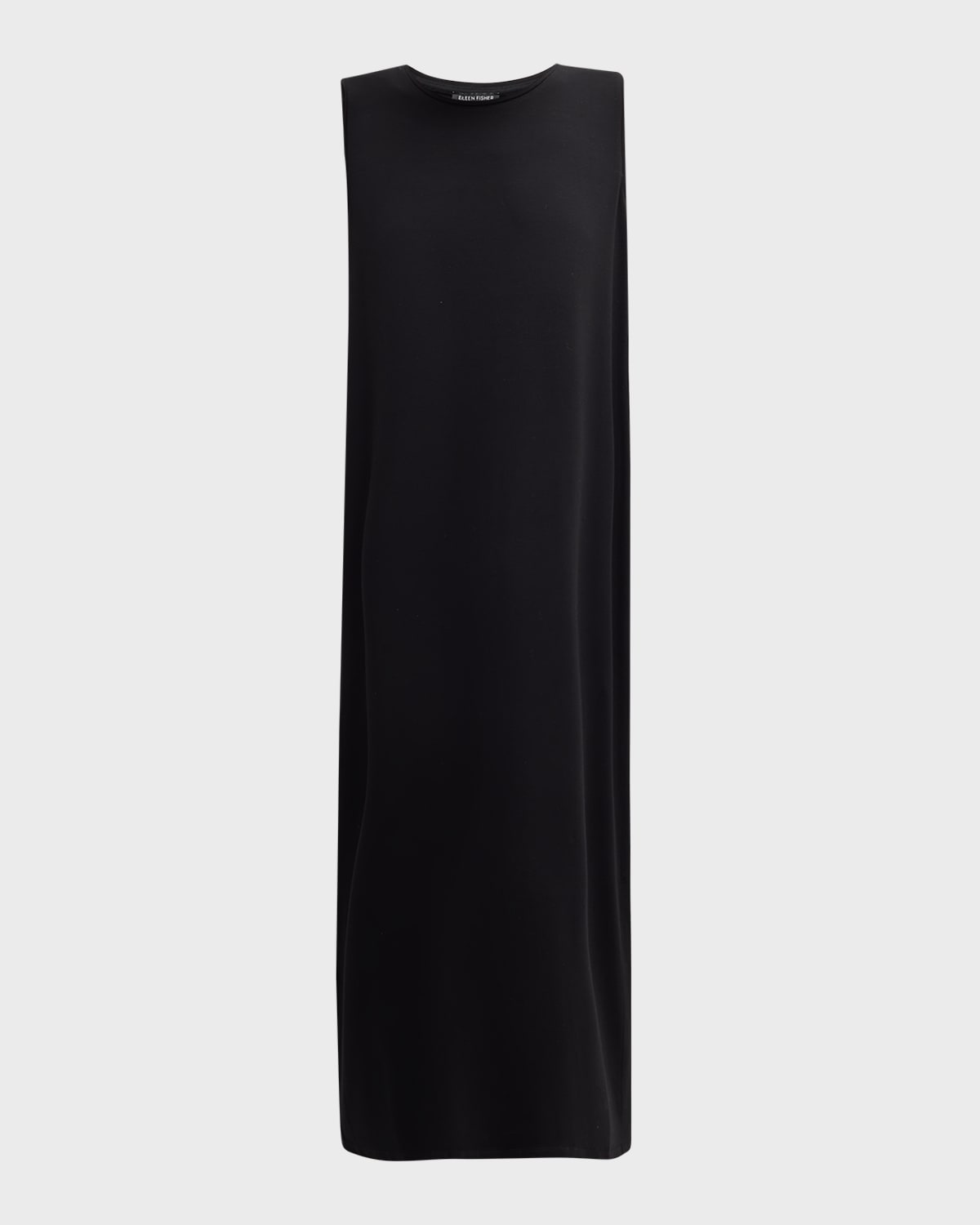 Eileen Fisher midi dress in mediumweight stretch jersey Approx. 47"L from shoulders to hem Crew neckline Sleeveless Hem falls below the knee Shift silhouette Slipover style Tencel™ lyocell/spandex Machine wash cold Imported