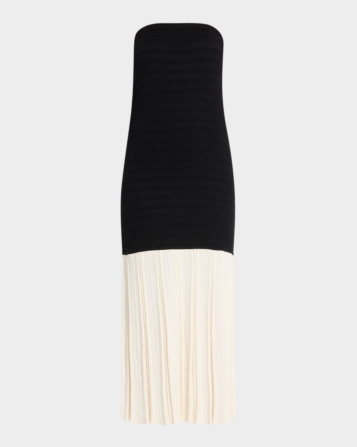 ELEVEN SIX "Leila" twotone midi dress with seersucker tube top and ribbed hem Approx. 42"L from neckline to hem Strapless neckline Sleeveless Hem falls below the knee Column silhouette Slipover style Cotton Hand wash or dry clean Made in Peru