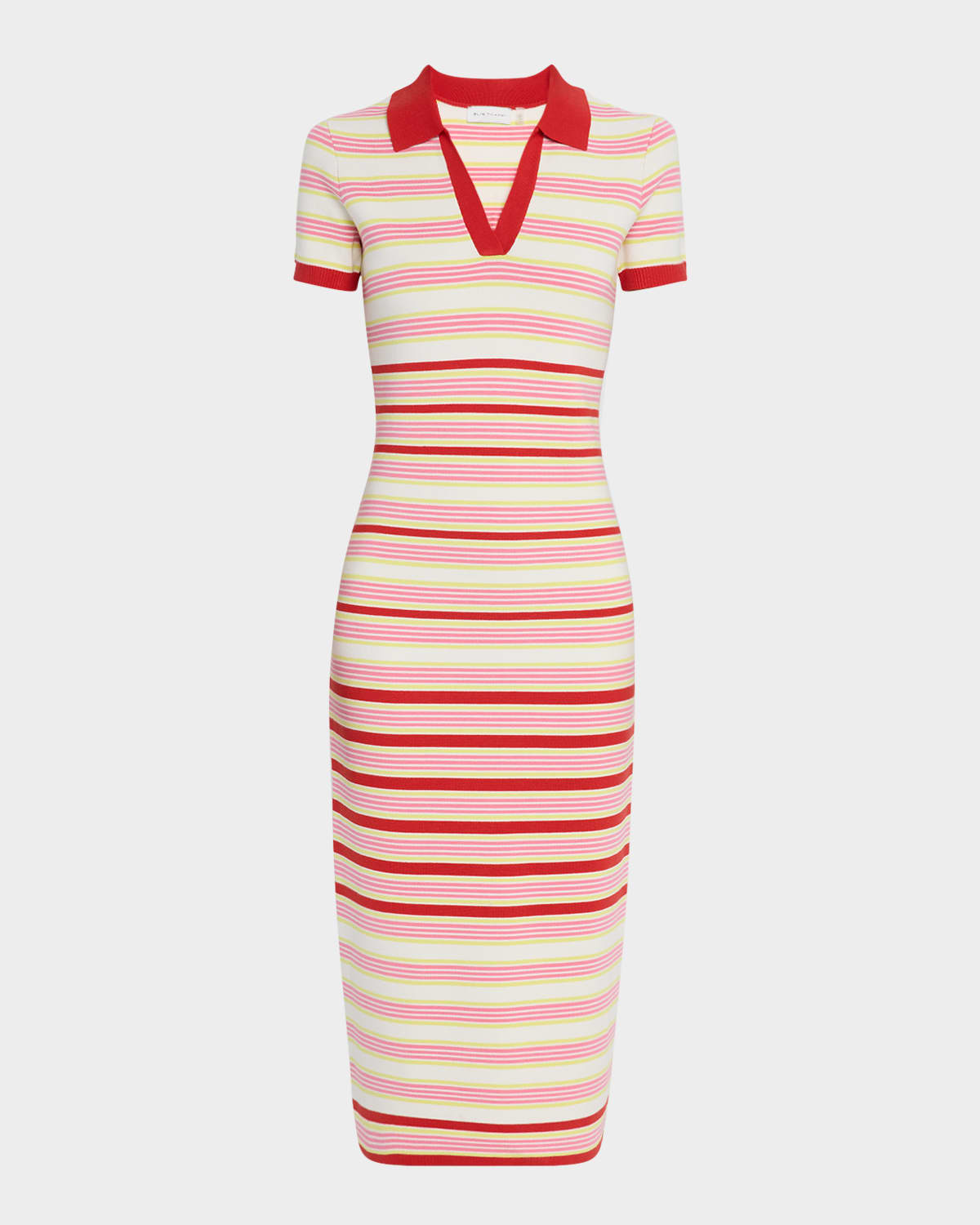 Elie Tahari "The Liberty" striped midi sweater dress Approx. 48"L from shoulders to hem Polo collar Short sleeves Hem falls below the knee Bodycon silhouette Slipover style Viscose/polyester Unlined Hand wash or dry clean Imported