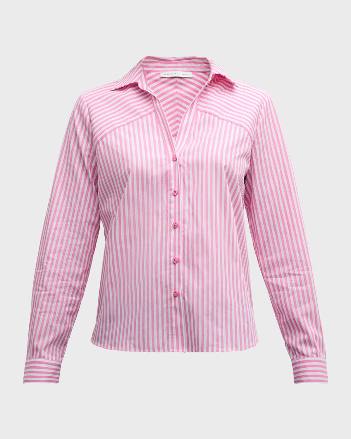Elie Tahari "The Nikita" striped shirt in cotton Approx. 27.5"L from shoulders to hem Spread collar; button front Long sleeves; button cuffs Back yoke with inverted pleat Relaxed fit Cotton Unlined Machine wash cold Imported