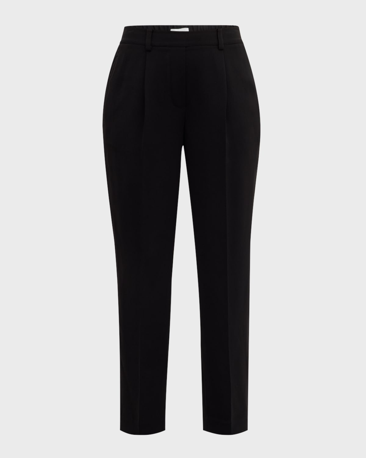 Elie Tahari "The Willow" pleated pants Approx. measurements: 28.5"L inseam; 39"L outseam Midrise sits high on the hips Partially elasticized waistband Side slant pockets Back welt pockets Cropped at the ankle Straight legs Pullon style Polyester Machine wash cold Imported