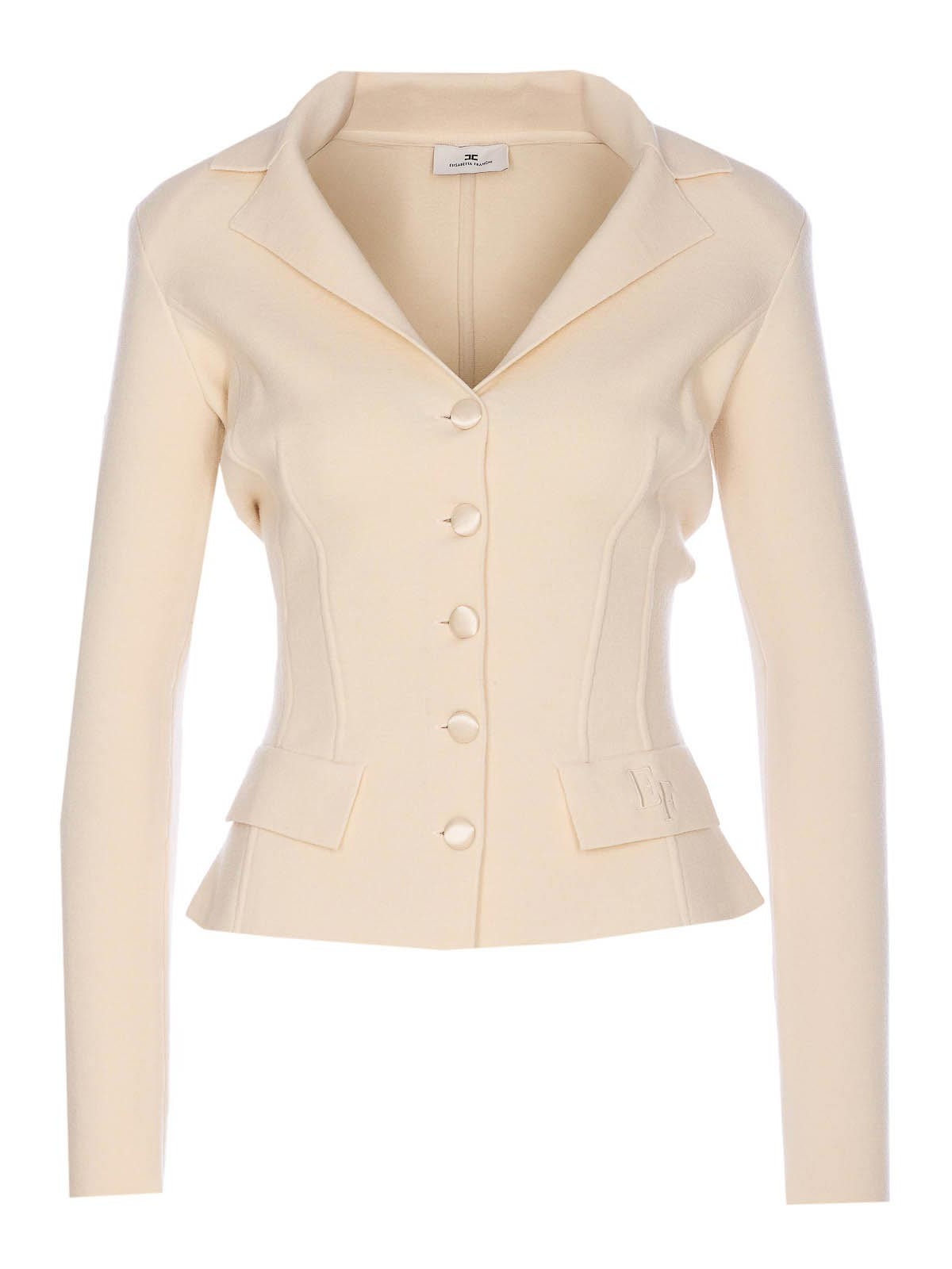 Cardigan en maille laiteuse Elisabetta Franchi, boutons sur l'épaule renforcée, manches longues inversées, logo brodé Nom de la couleur du créateur: blanc