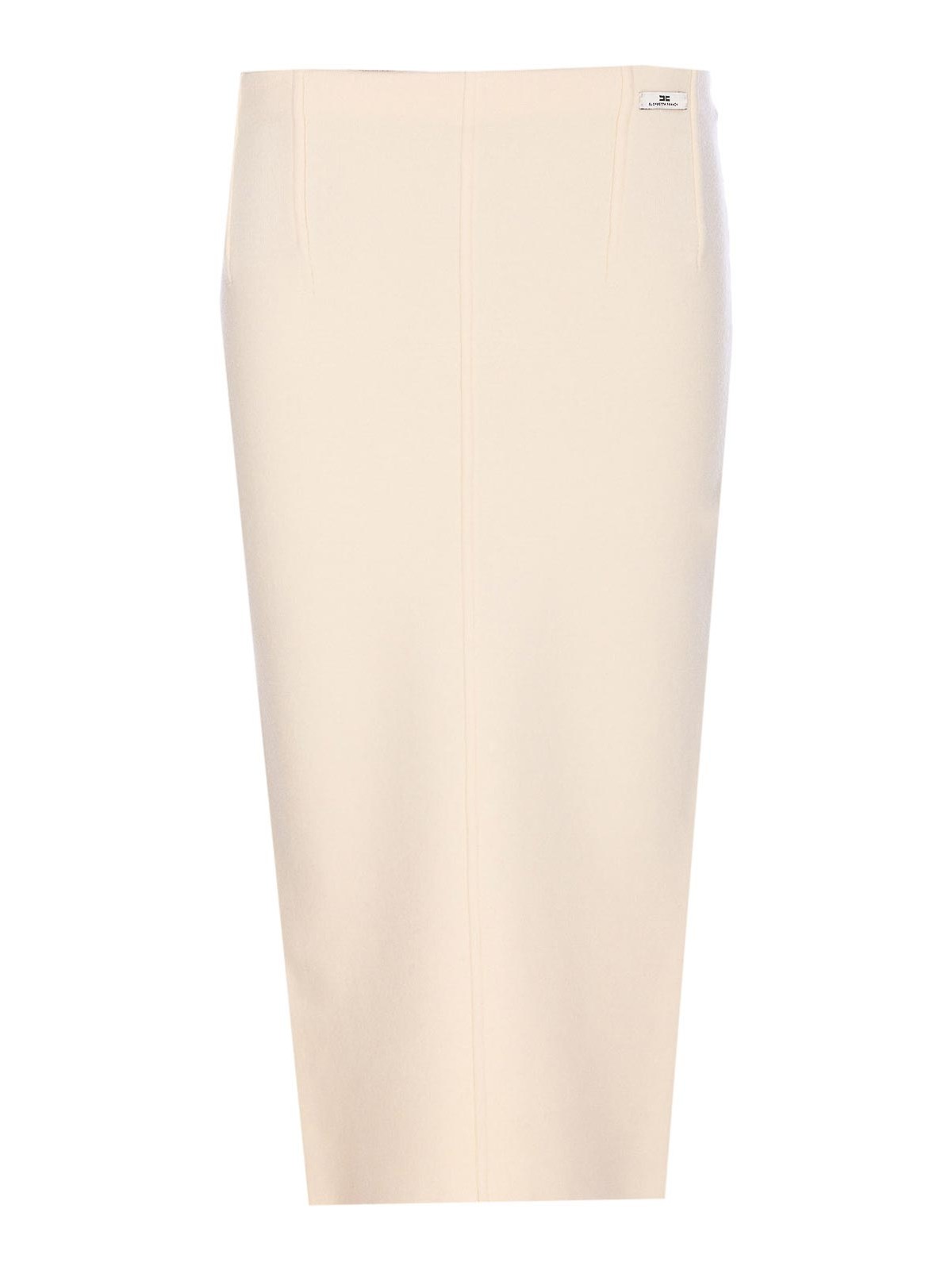 Jupe blanche Elisabetta Franchi, fermeture éclair et crochet au dos, boutons, coupe moulante, mini-patch, logo de la créatrice: blanc