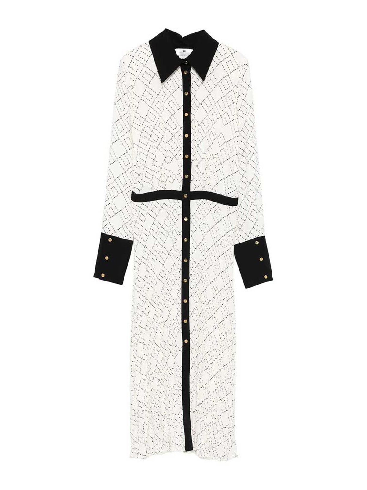 Imprimé géométrique blanc cassé, panneau noir, boutons ton sur ton, poignets noirs, manches longues