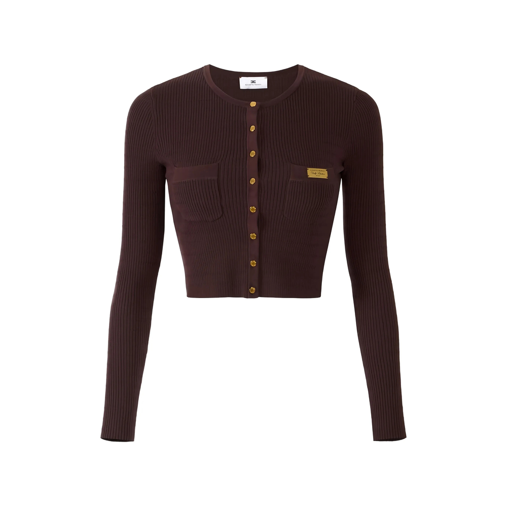 cocoa braided ribs gold-tone buttons breast pockets logo plaque long sleeves