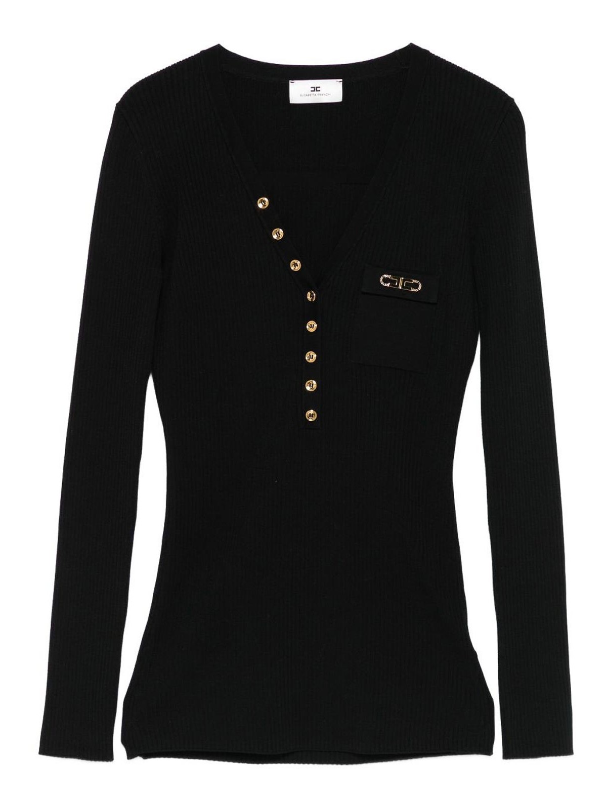 Patte de boutonnage en maille côtelée noire, logo à boutons ton sur ton