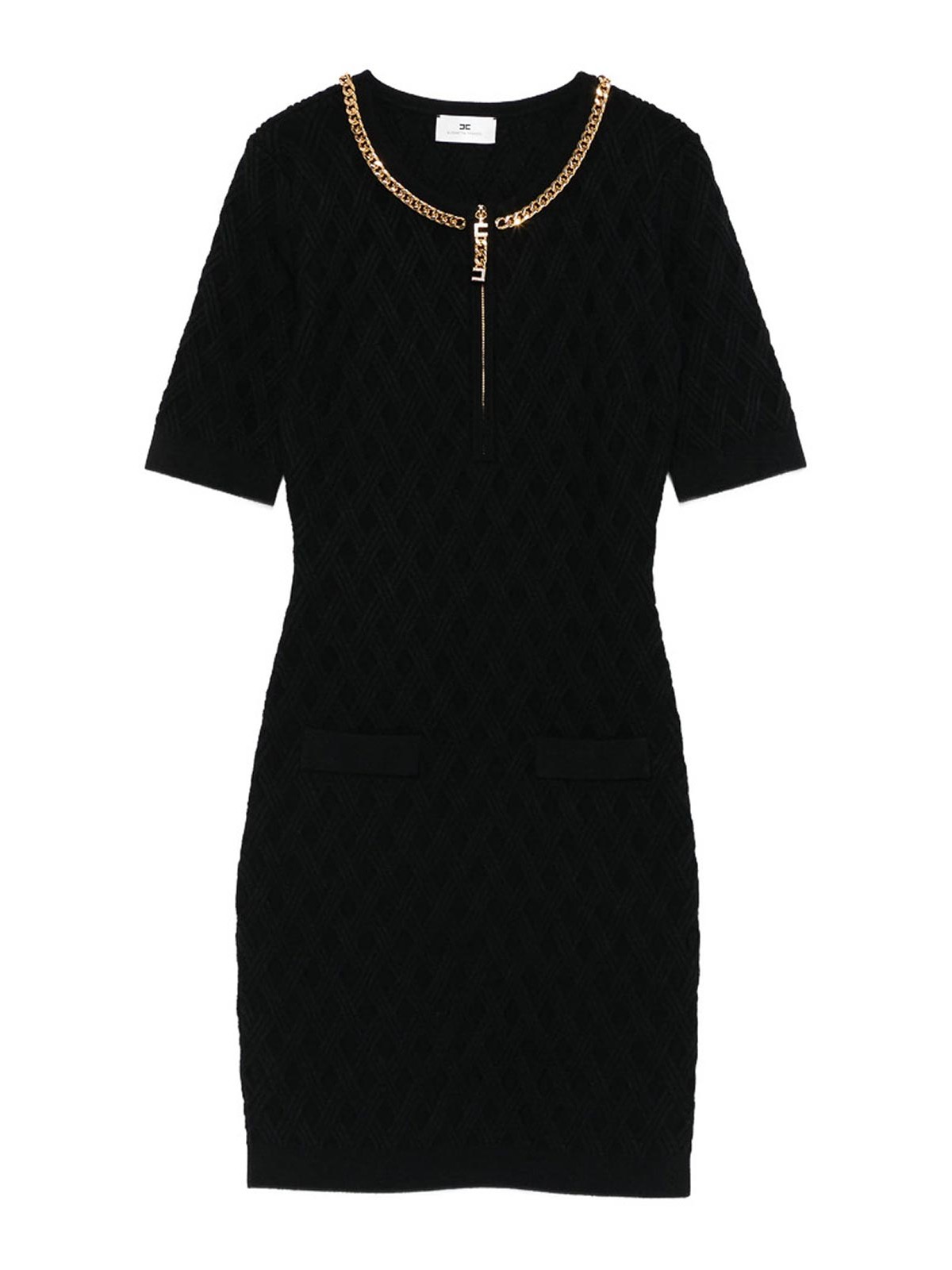 Fermeture éclair à manches courtes et ourlet droit avec chaîne noire