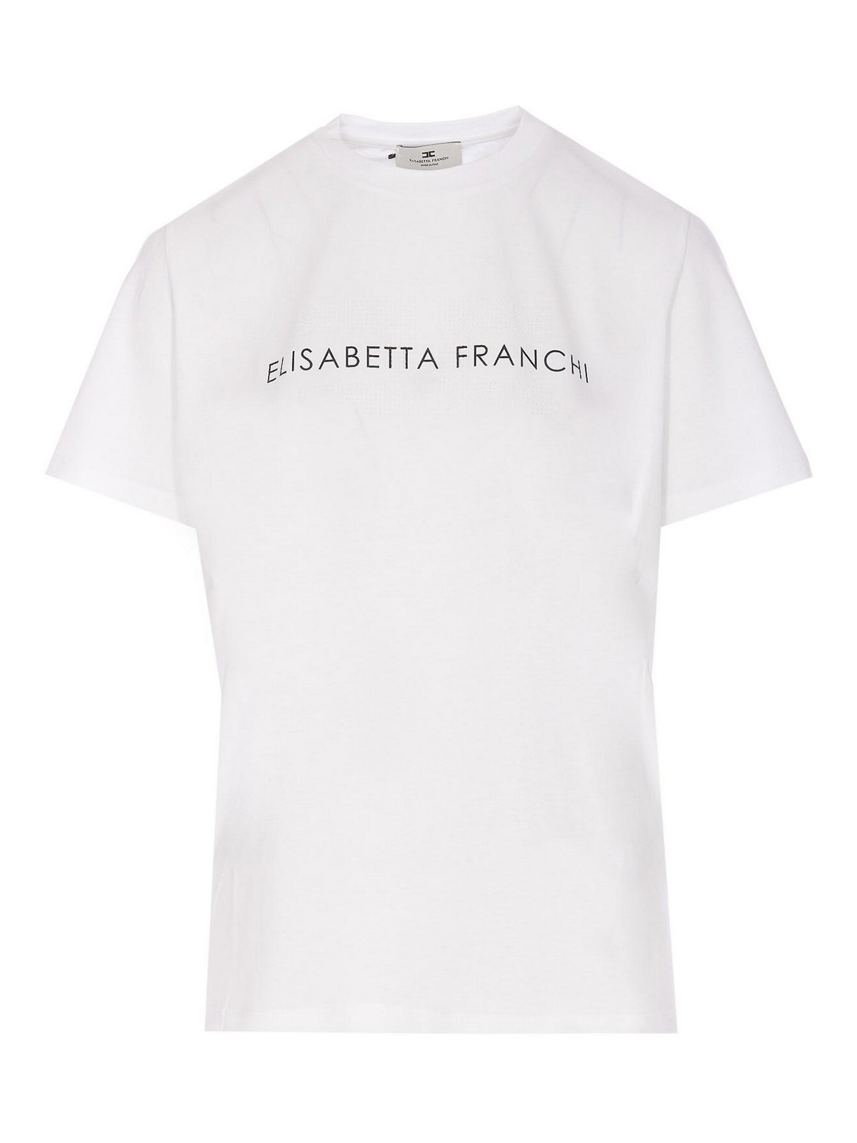 T-shirt blanc Elisabetta Franchi, col rond, logo frontal, ton sur ton