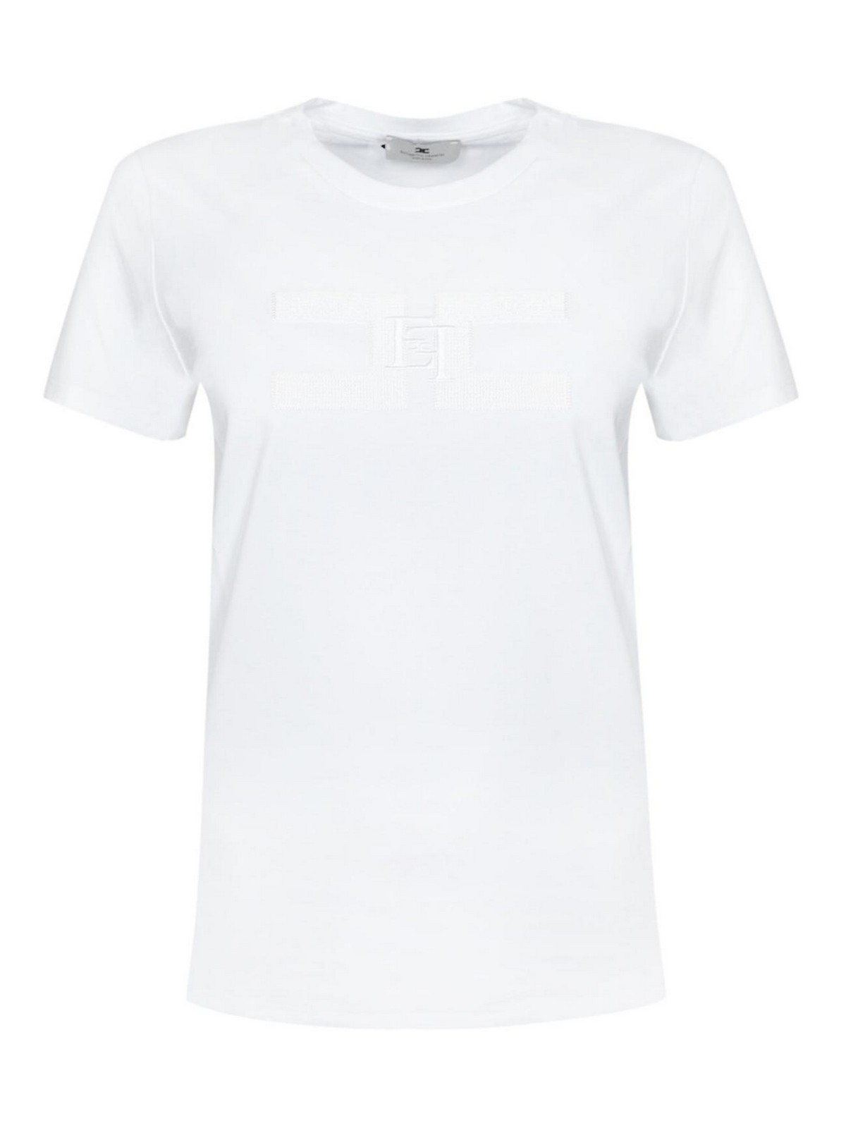 Coupe cintrée à manches courtes et col rond en coton, double logo sur l'ourlet droit