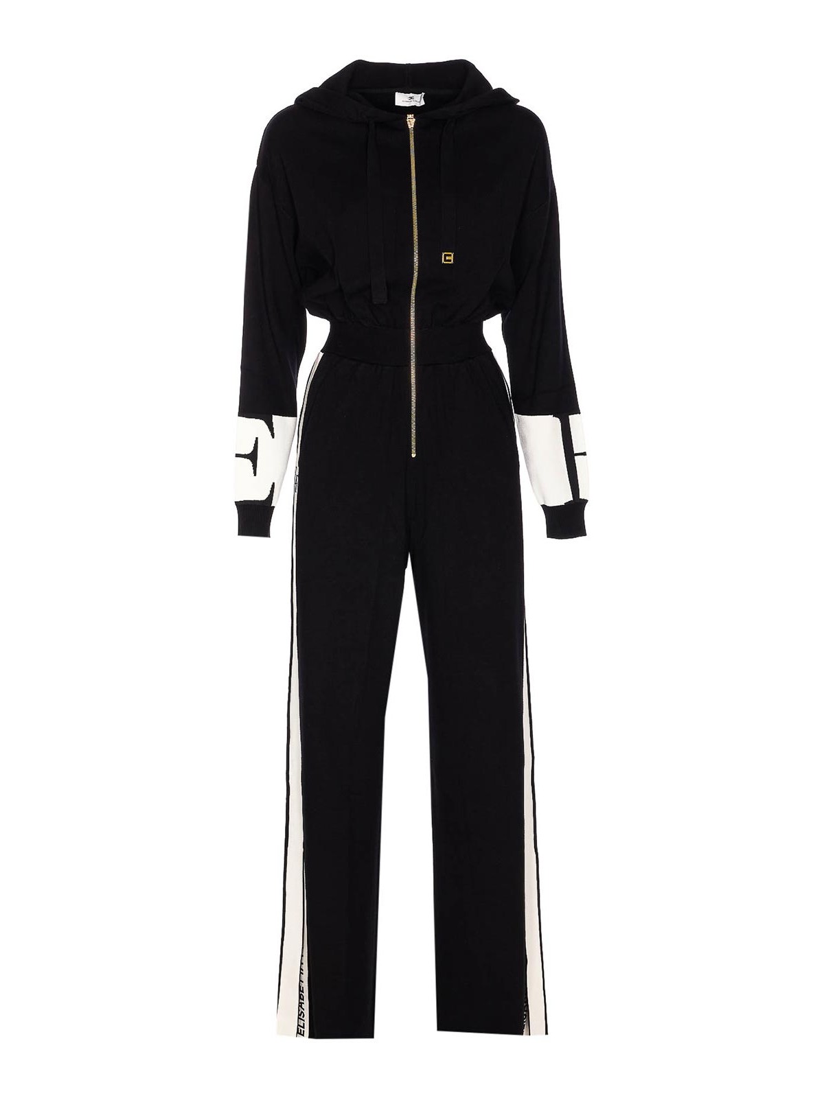 Costume en maille noire Elisabetta Franchi à manches longues, fermeture éclair sur les poches latérales, capuche avec logo en coulisse Nom de la couleur du créateur: noir