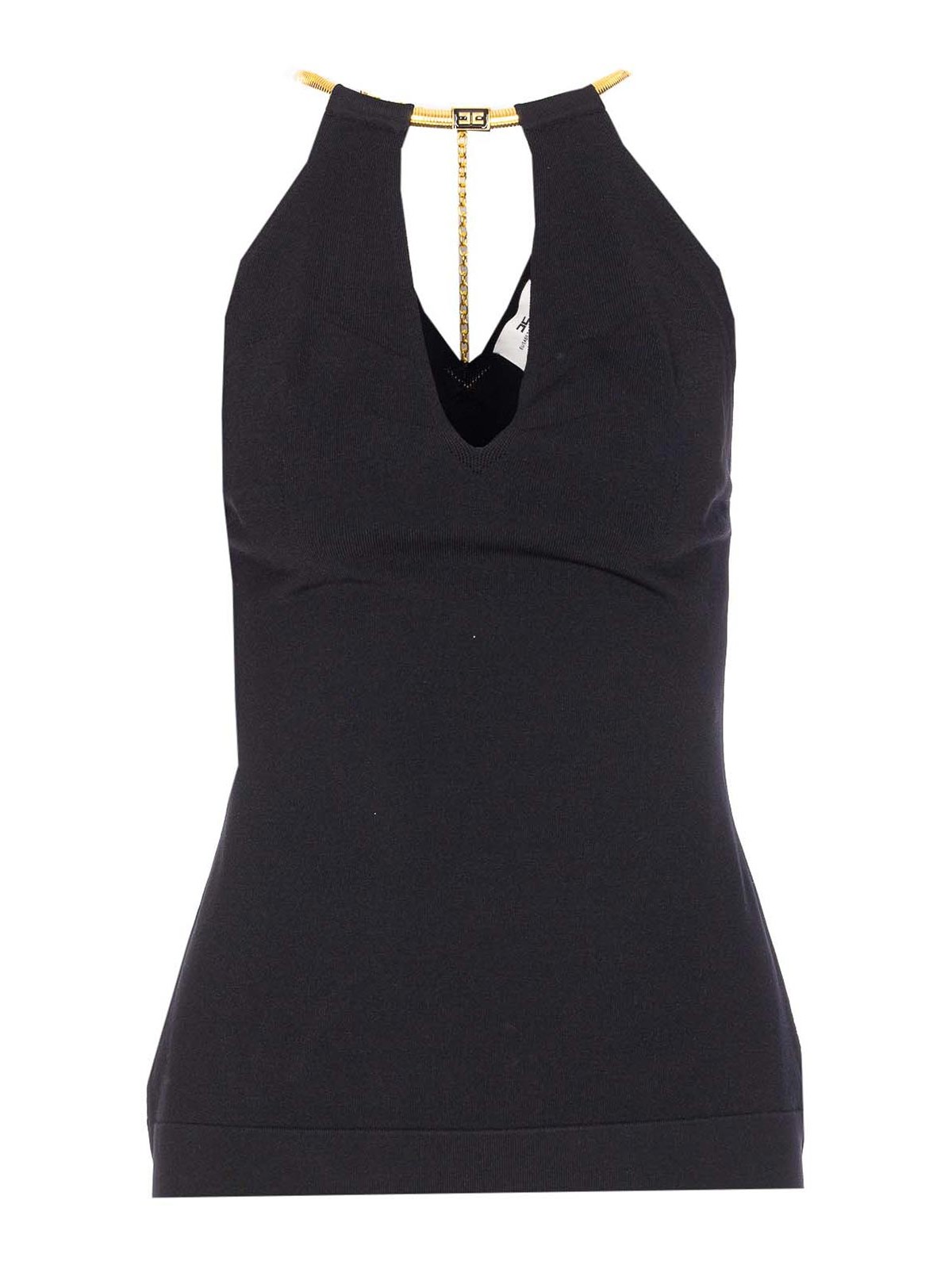Top noir Elisabetta Franchi, col licou, sans manches, nom de la couleur de la créatrice: noir