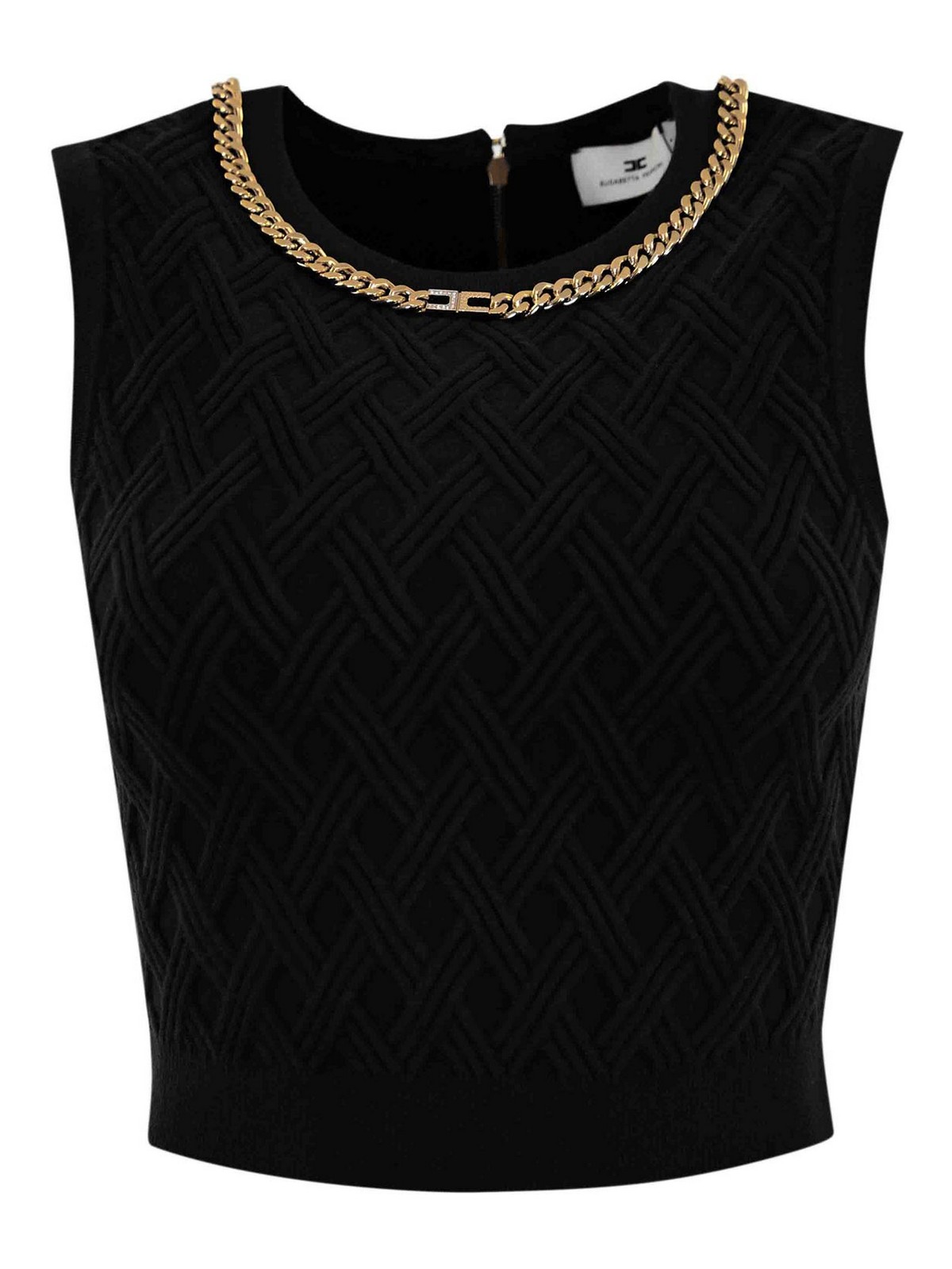 Col rond sans manches en tricot de viscose à motif avec aillet, fermeture éclair arrière à aillet ton sur ton avec tirette à logo, coupe ajustée
