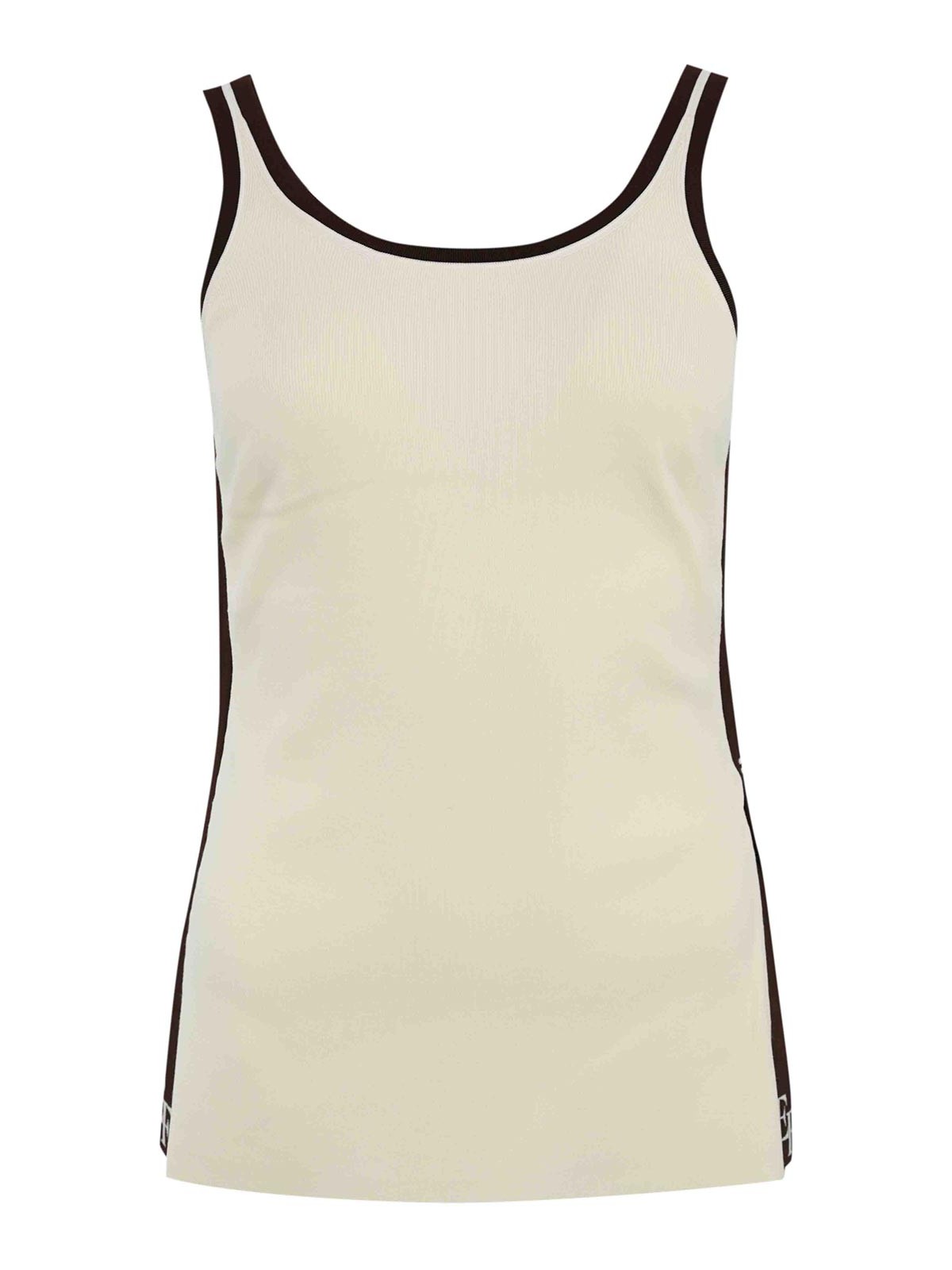 Pull en viscose, col large, sans manches, bandes à logo latérales contrastantes et brillantes, fentes latérales, coupe ajustée