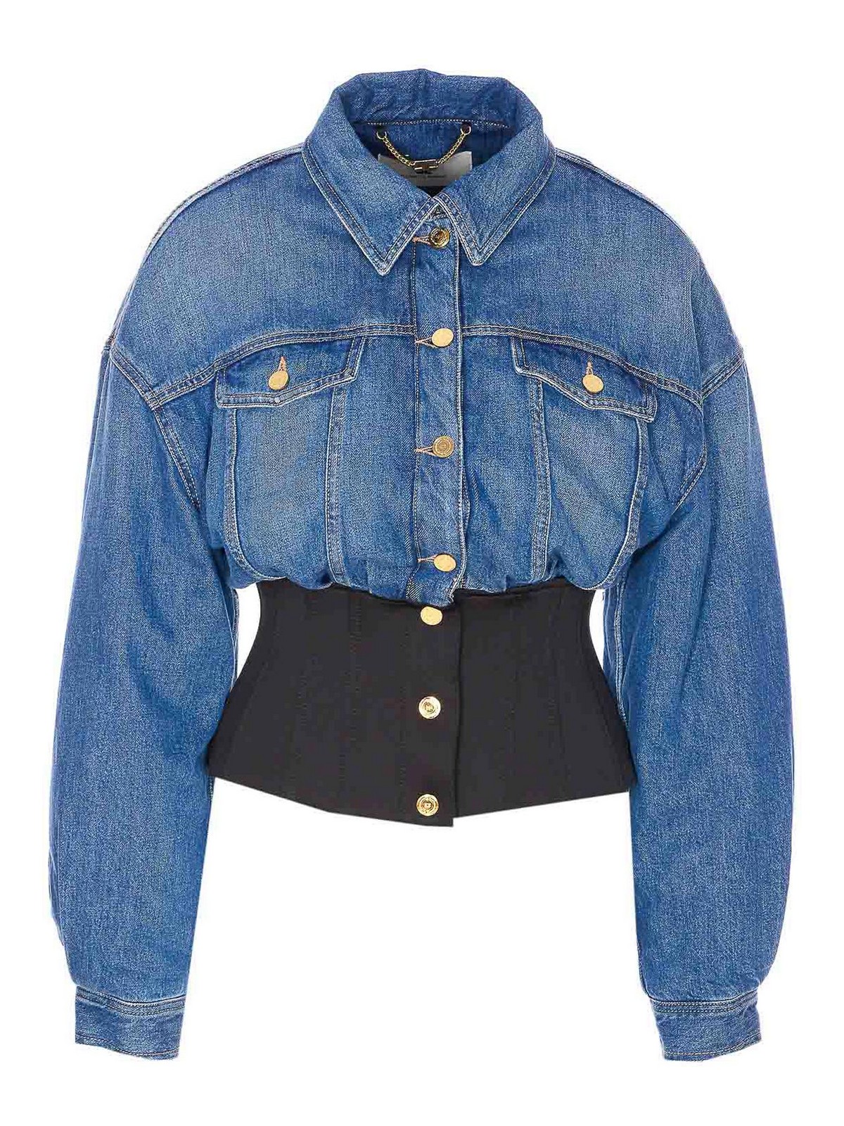 Veste rembourrée en jean Elisabetta Franchi avec boutons, col régulier, manches longues, poignets boutonnés