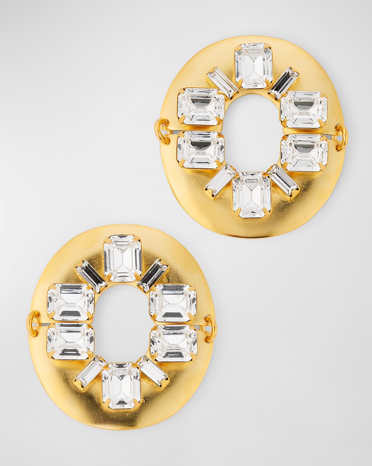 Elizabeth Cole earrings Approx. 2.75"L 24karat goldplated brass Emeraldcut crystals For pierced ears Made in the USA