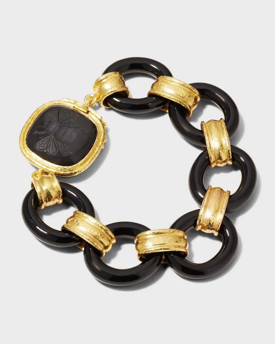 Elizabeth Locke bracelet Approx. 7.5"L; 21mm links Signature 19karat yellow gold Large black jade links Box clasp Imported