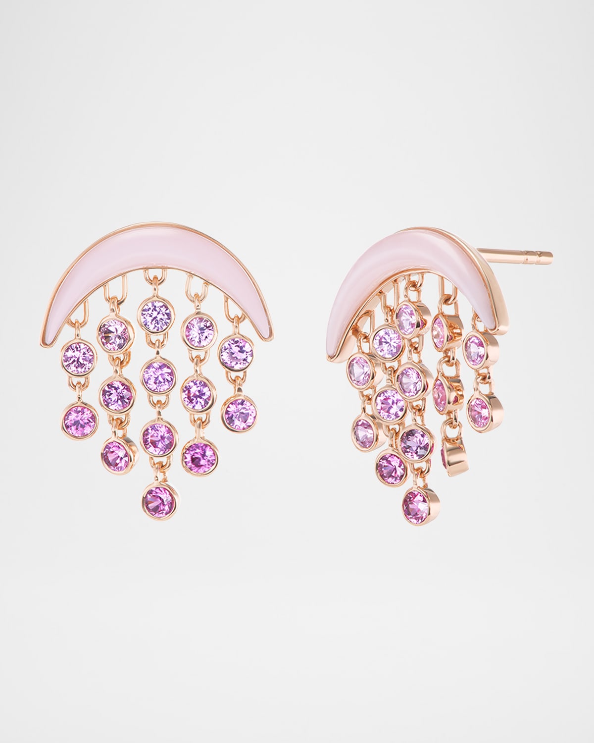 18K Rose Gold Baby Fringe Earrings with Pink Sapphire and Opal