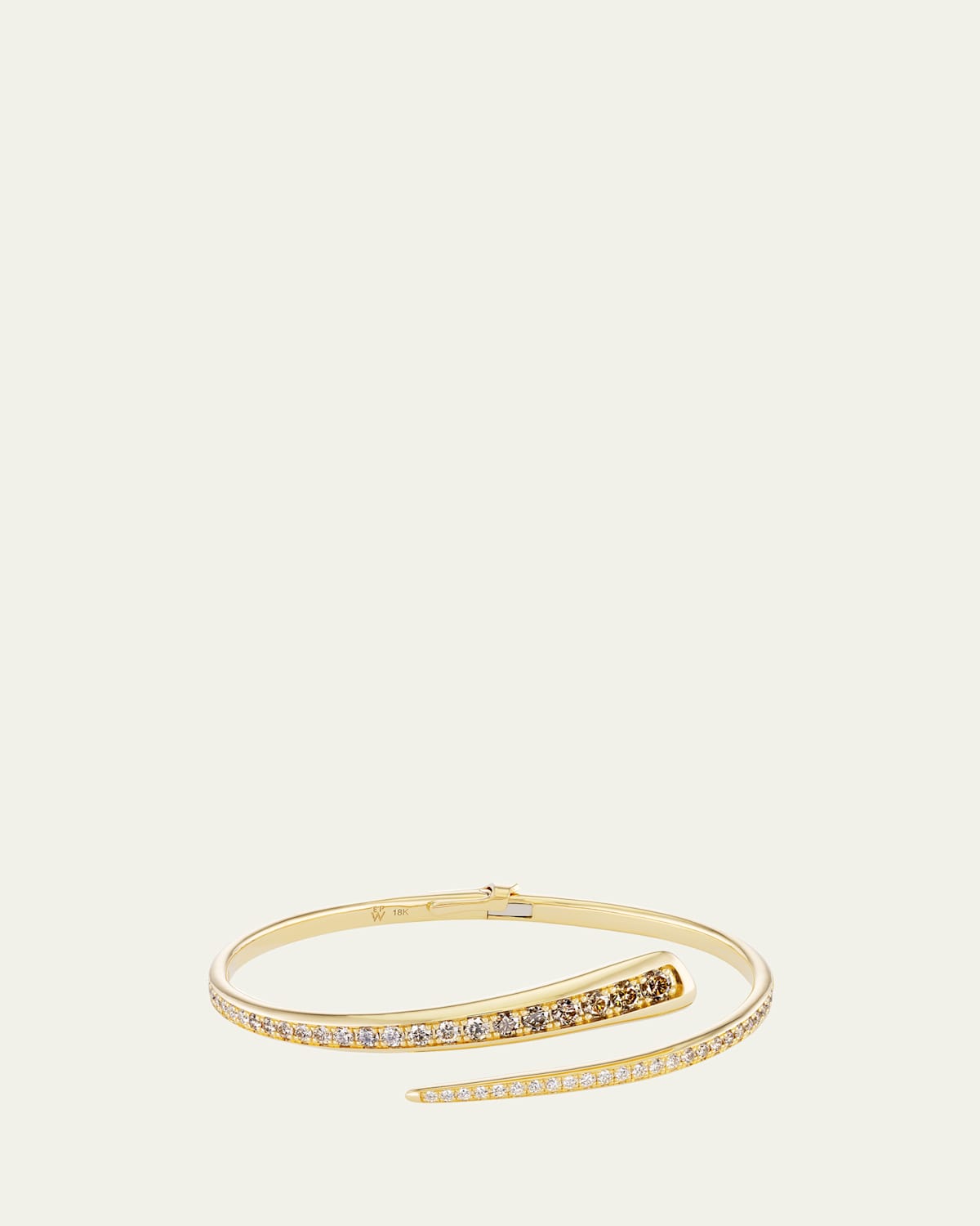 Tapered to create a bypass silhouette, this Emily P. Wheeler bracelet wraps the wrist with a clever gradient of white to brown precious diamonds. Polished 18karat yellow gold 0.43 total diamond (white) carat weight 1.7 total diamond (brown) carat weight Hinged opening eases dress Made in USA
