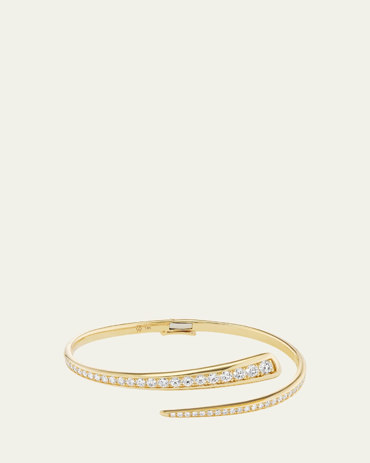 Emily P. Wheeler wrapstyle bracelet inspired by an orbit 18karat solid yellow gold Graduated round white diamonds Diamond total carat weight: 2.02 Hinge at the back with a safety clasp Hand wash, spot clean, wipe clean Made in USA