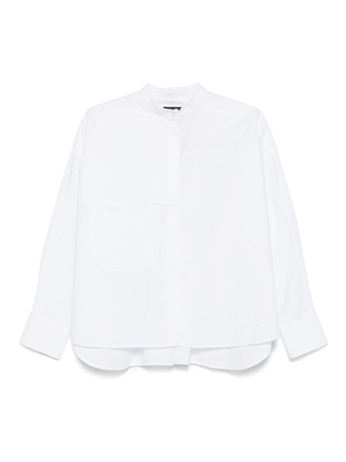 Poche fendue boutonnée blanche dissimulée sur la poitrine, fentes latérales, design à plis creux
