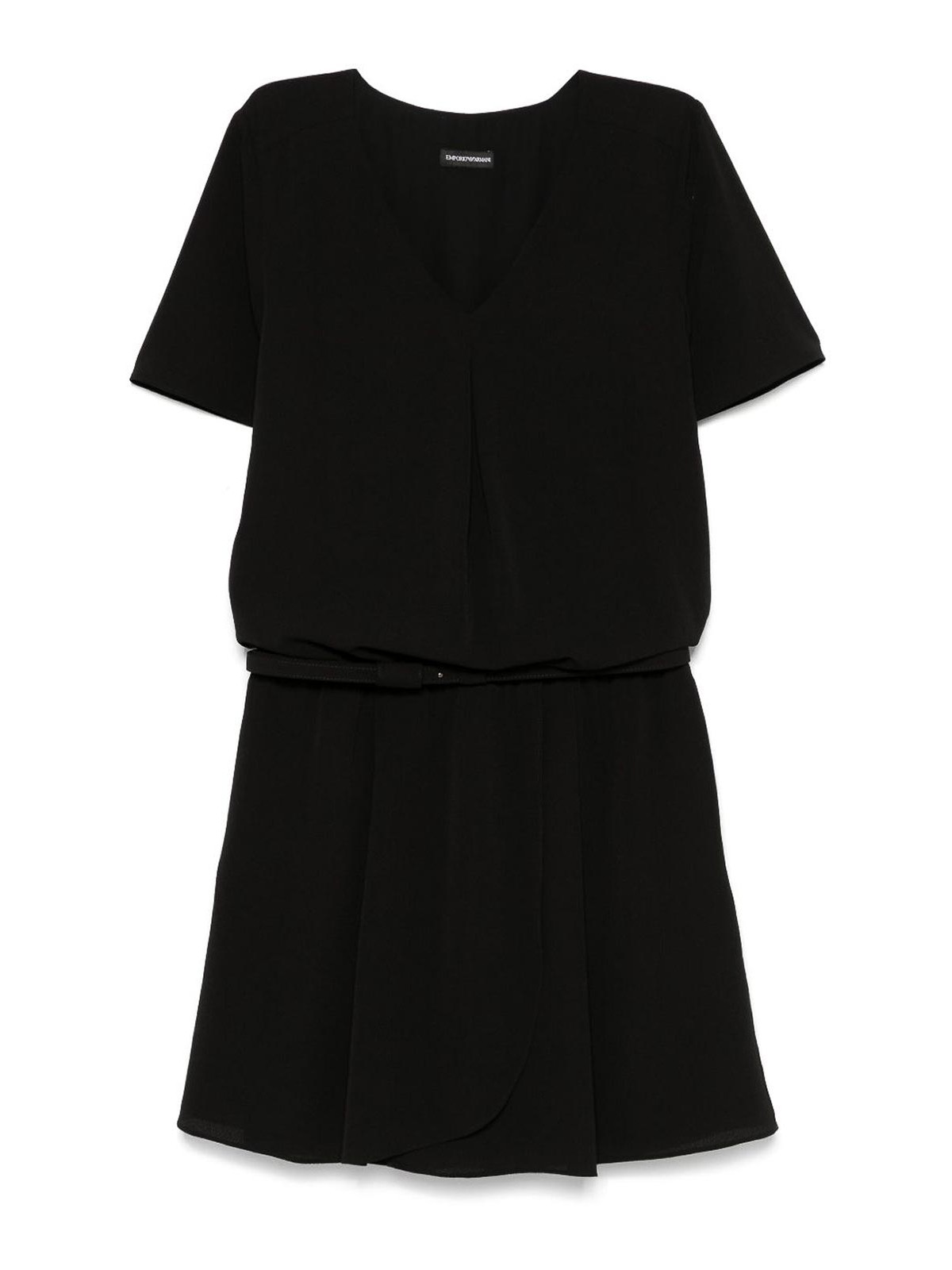 Ceinture élastiquée noire à manches courtes et col en V