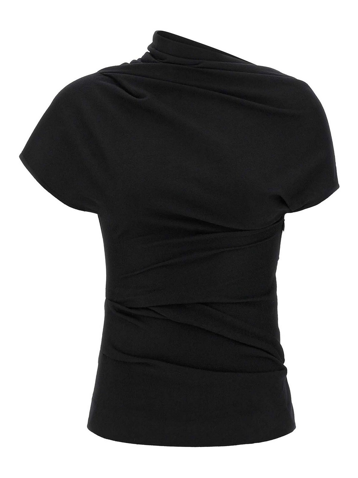 haut « flop » en stretch avec encolure bateau et drapé dans le dos, manches courtes, fermeture éclair latérale