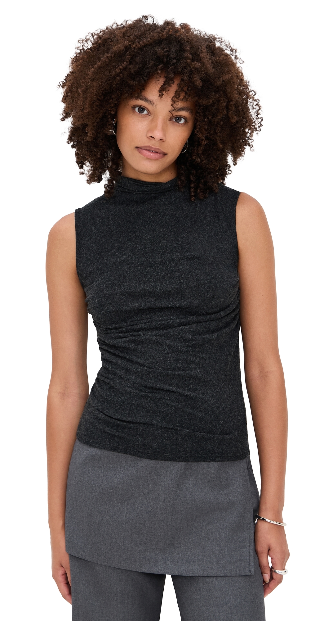 Cashmere Blend Sleeveless Twist Top Charcoal