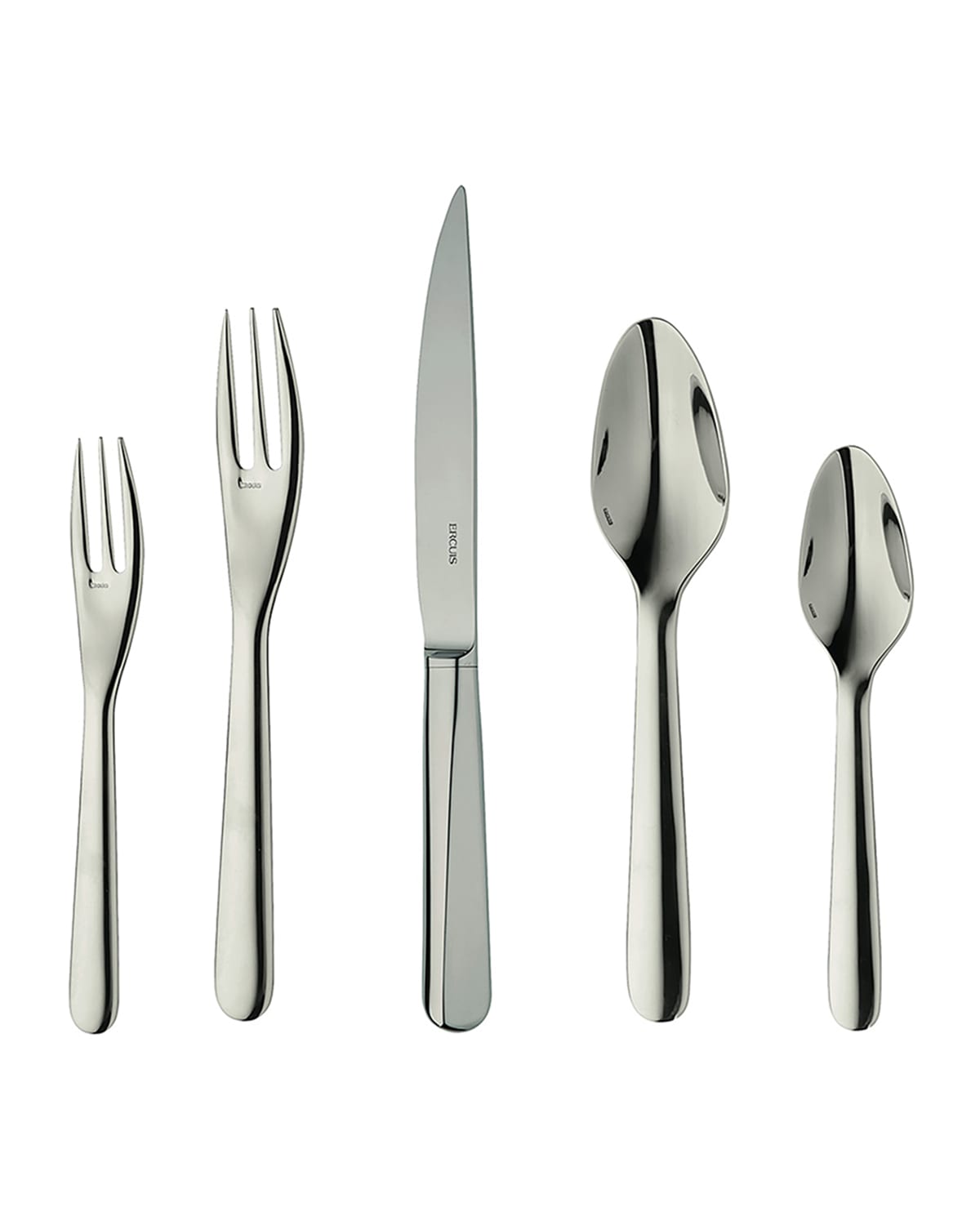 Flatware set made of stainless steel. Fivepiece place setting. Made in France.