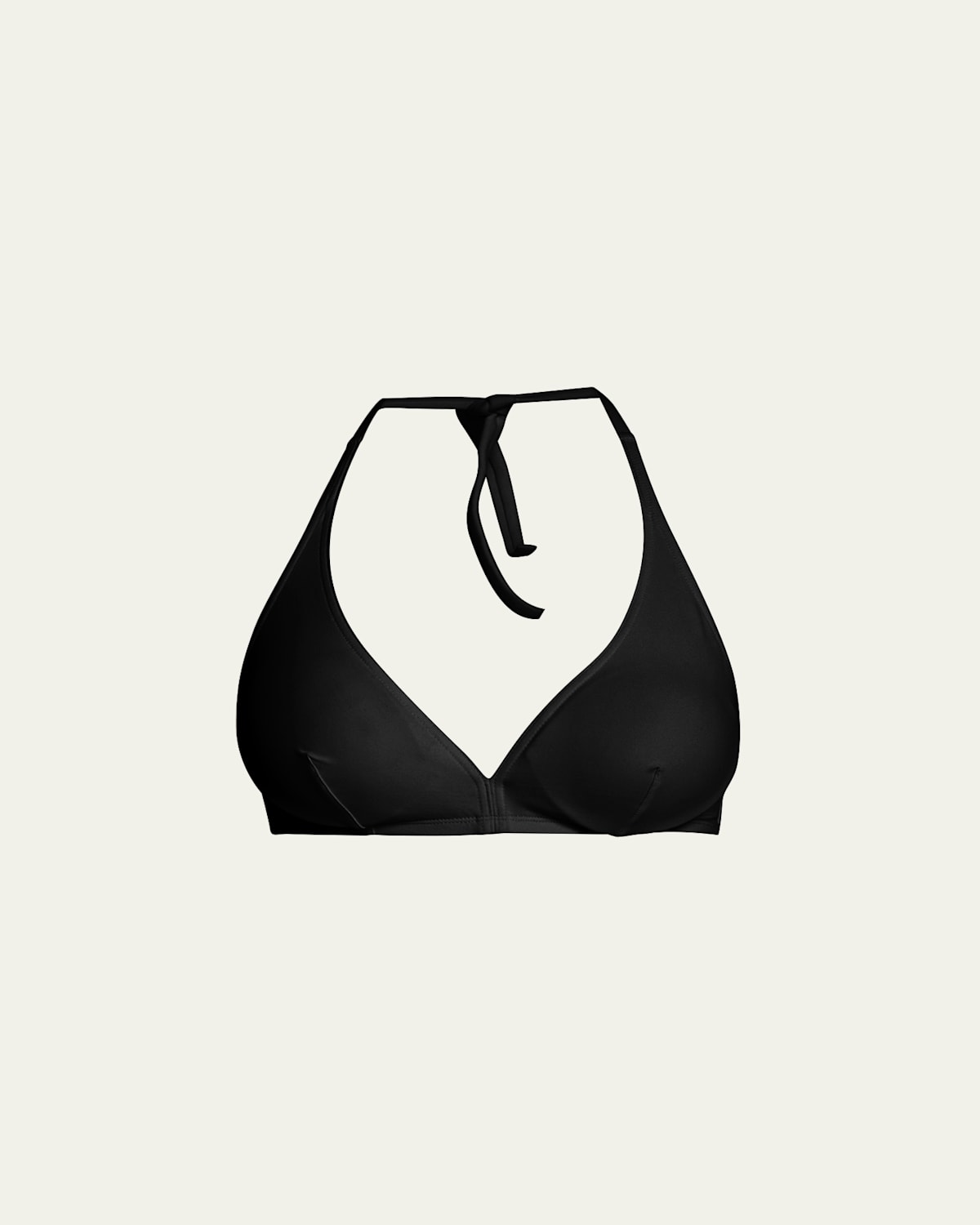 Eres "Gang" solid bikini top. Halter neckline. Fixed triangle cups. Banded under bust. Nylon/spandex. Made in France. Bottoms sold separately.