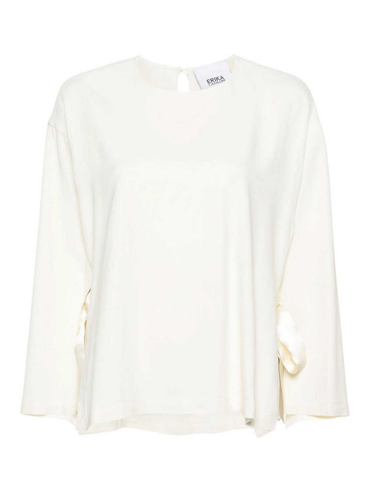 Col rond, col rond, manches larges ouvertes, ourlet droit, ourlet droit, cravate