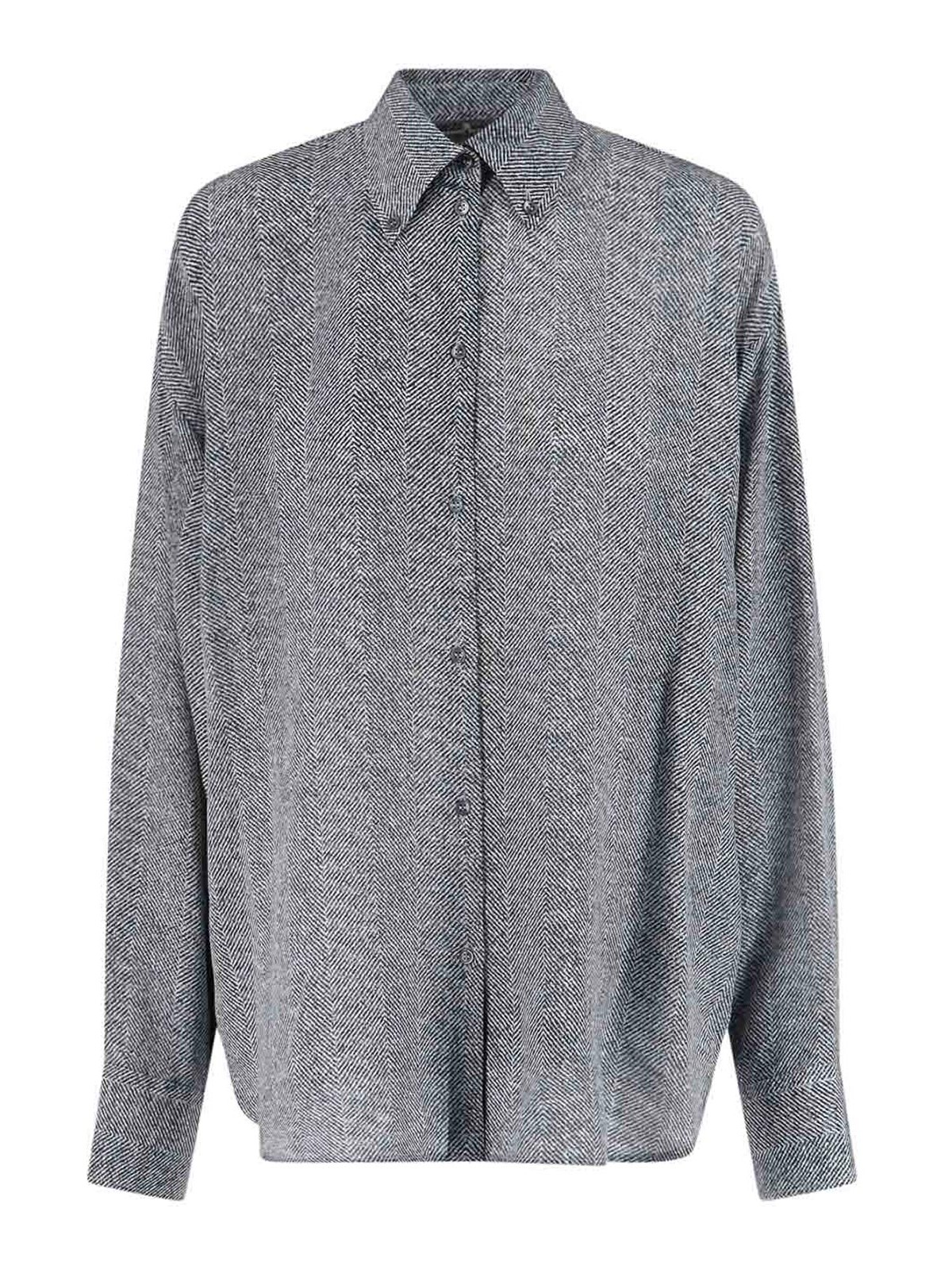 PAGE DE CHEMISE SPINA RAGE ERMANNO SCERVINO, en soie grise, col boutonné, fermeture boutonnée, épaules fermées, boutons de poignets, bord droit.