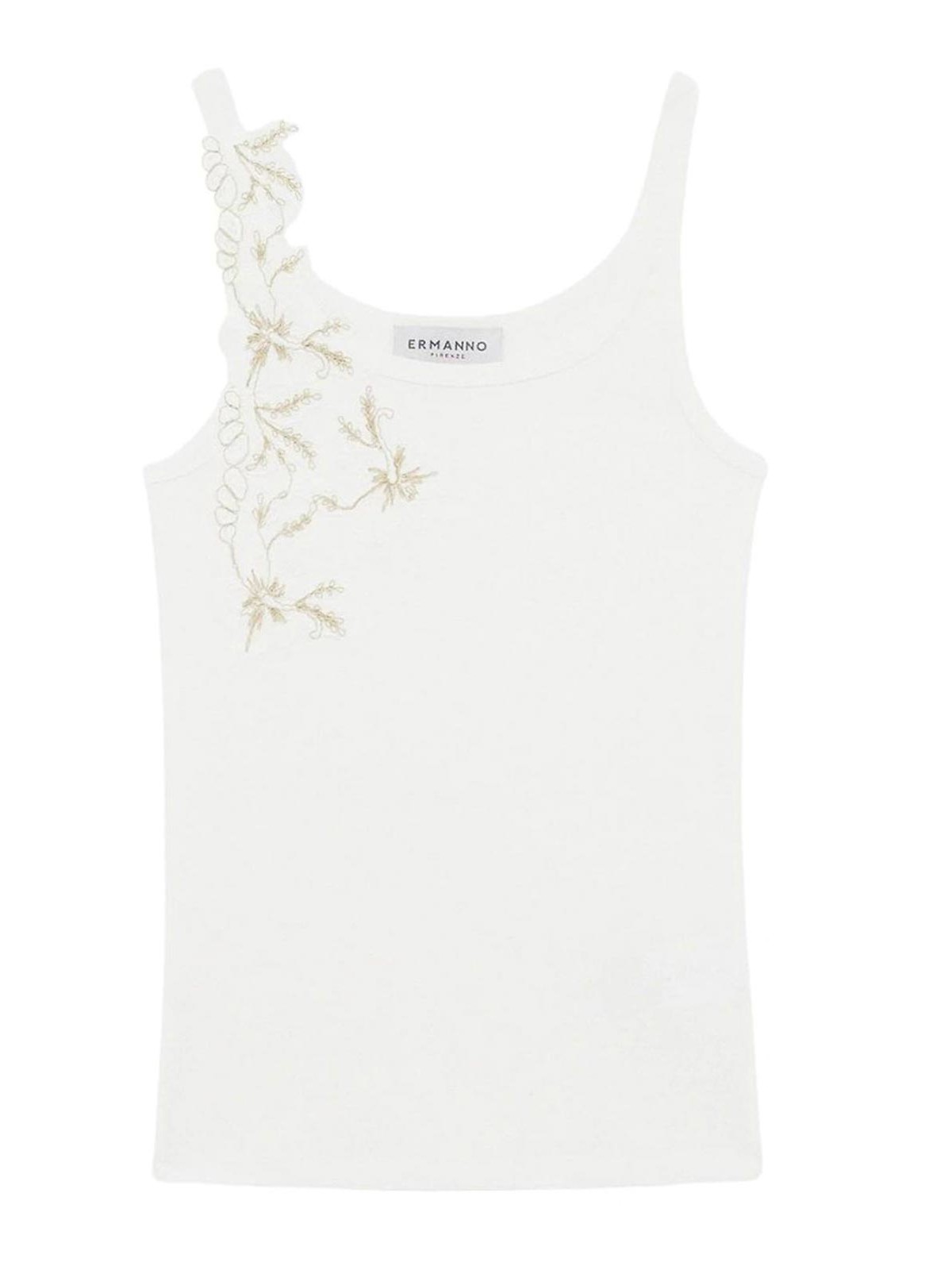 Top blanc signé Ermanno Scervino avec encolure dégagée et ourlet côtelé non doublé sans manches.
