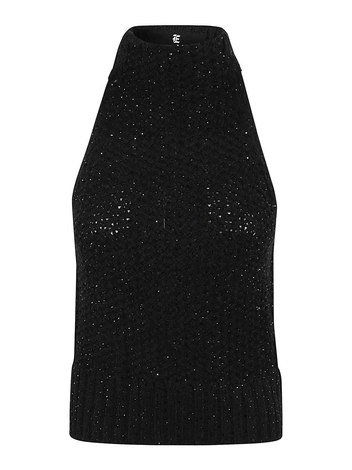 Top mixte d'Ermanno Scervino Encolure américaine avec boutons Design de bas élastique côtelé Coupe classique Motif torsadé orné de