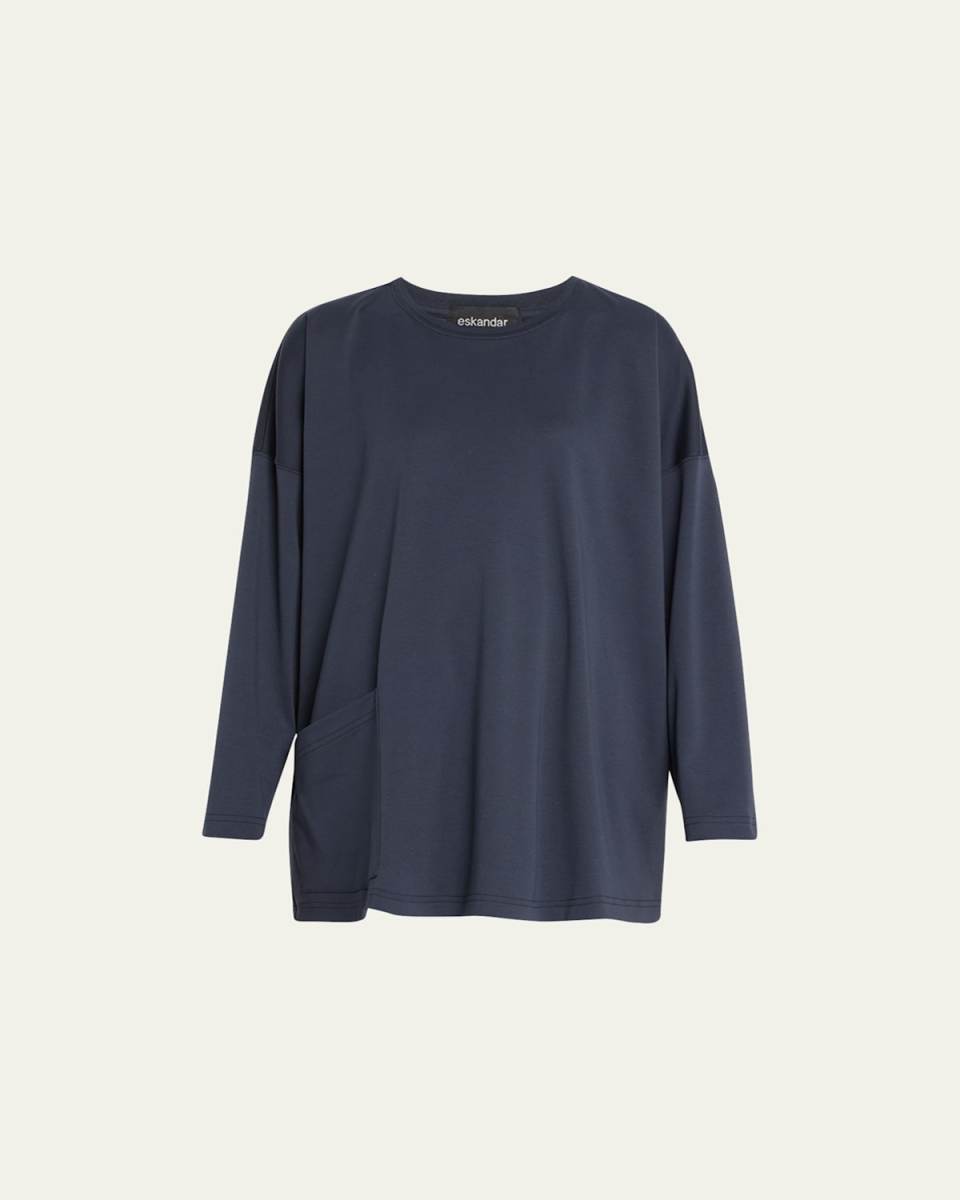 Eskandar Tshirt with an angled front pocket Round neckline Long sleeves Relaxed silhouette Pullover style Pima cotton Hand wash Made in Peru