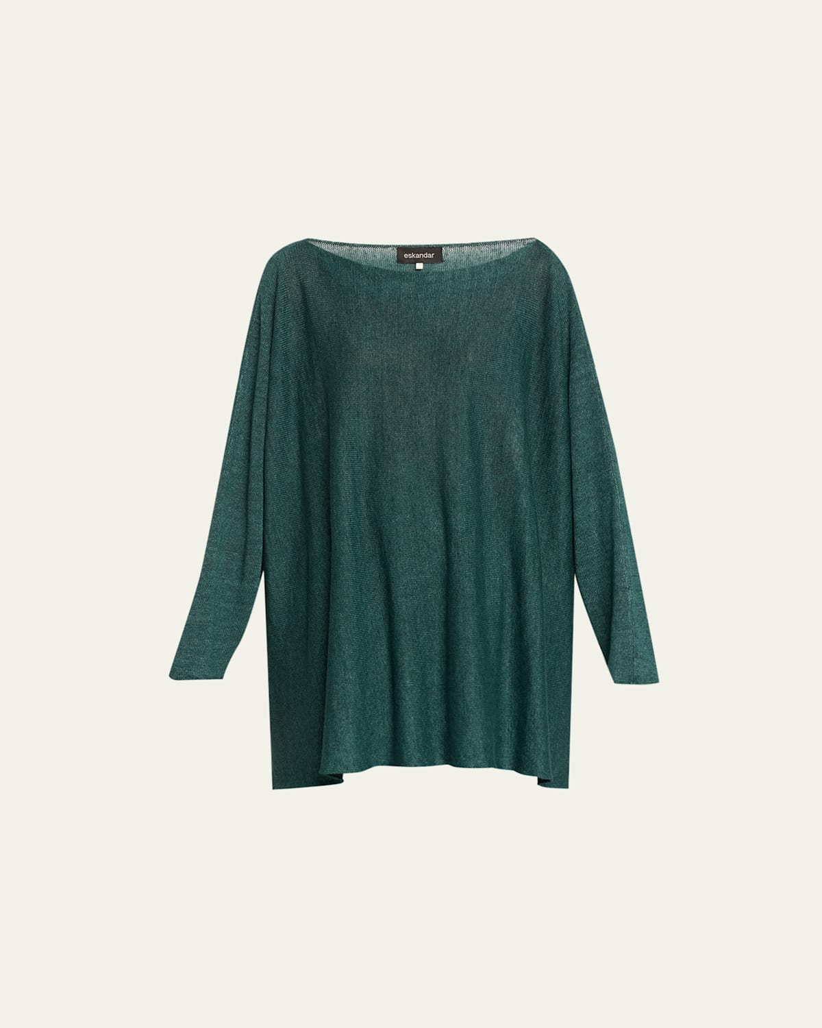 Eskandar long sweater in sideways knit Boat neckline Long sleeves Wide fit Long length Pullover style Linen Made in United Kingdom