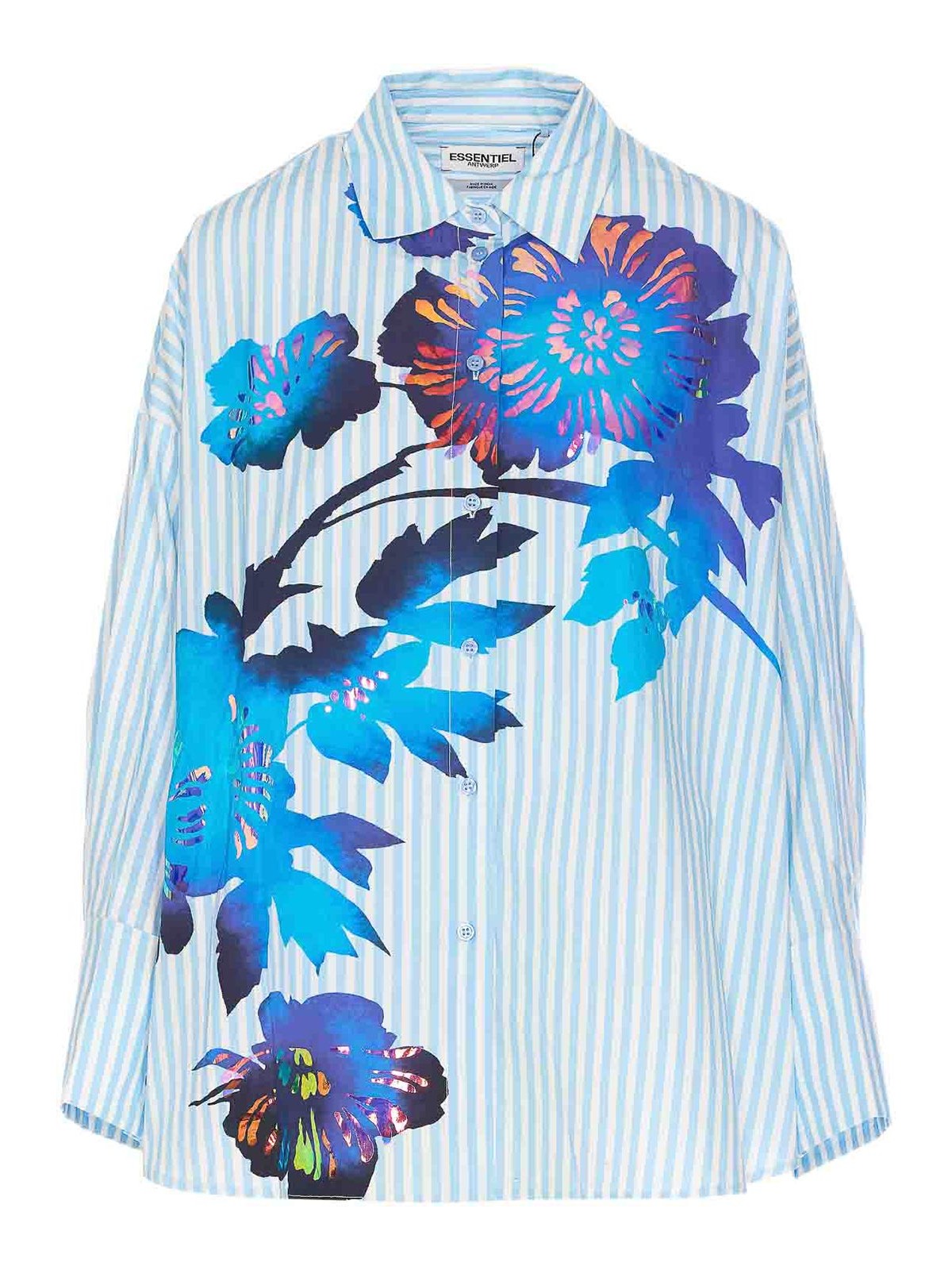 Chemise Hibra bleu clair Essentiel Antwerp, boutons, manches longues, col régulier, imprimé à rayures